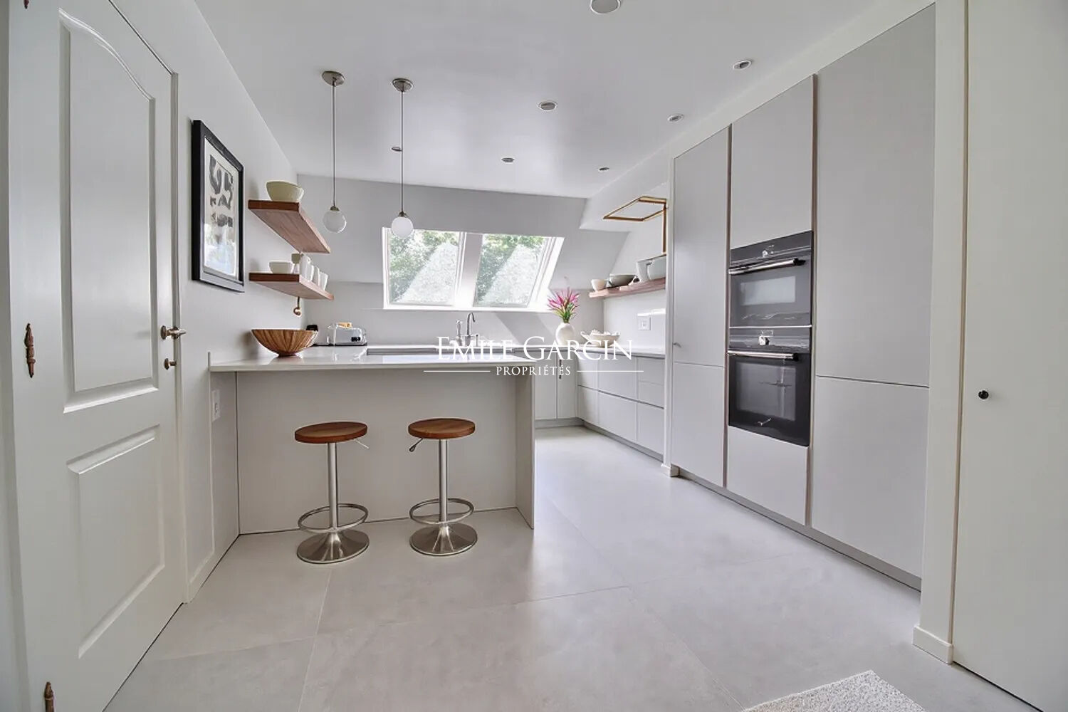 Exclusively located near Fort Jaco, the Forêt de Soignes and the Lycée Français, this magnificent duplex penthouse apartment was fully renovated in 2025. Backing onto two beautiful south-facing terraces, the first level comprises an entrance hall with guest WC and cloakroom, a fully equipped kitchen-diner with integrated utility room, a large reception room with fireplace, a bedroom with built-in wardrobes and ensuite bathroom, and a second bedroom with built-in wardrobes and ensuite shower room. An internal staircase leads to the upper floor, which presents a large master suite with ample built-in wardrobes and ensuite bathroom, and another bedroom with built-in wardrobes and ensuite shower room. The property is sold with a double garage and a large cellar. Peaceful and very bright, the apartment boasts a high-end finish and several terraces with leafy views (images of the interior design are provided for illustrative purposes only and are not contractually binding). EPC: assessment in progress. Monthly condominium charges: 500 EUR (including heating, maintenance and electricity of common areas, elevator).