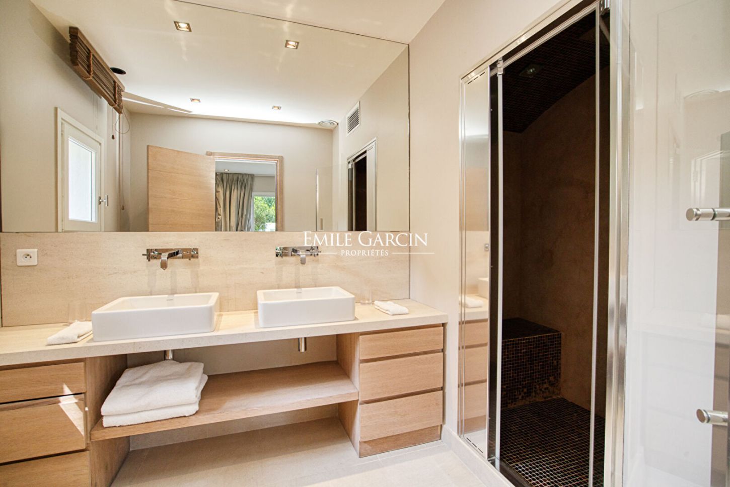 Provençal farmhouse of 400 sq.m located on 20,000 sq.m of landscaped grounds planted with vines and olive trees. A peaceful bucolic environment near Escalet beach. All modern comforts. 6 bedrooms, 6 bathrooms. Large terraces facing the swimming pool (fenced off with a barrier). Home gym. Large car parks. Registration number: 83101 000655NT