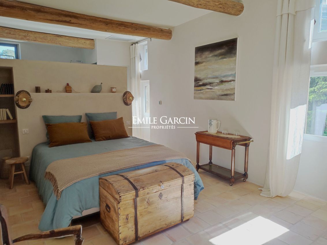 Located just minutes from the centre of Uzès, this gem of a property comprises an exceptional 400-sq.m farmhouse sitting on 4 hectares of private grounds. Fully air-conditioned, the property features five ensuite bedrooms, a vast living room, a spacious kitchen and a billiards room. Outside, you will find a large 17 x 8m swimming pool, a shaded dining area, a barbecue, deckchairs and sun umbrellas. Enjoy a break in the company of only the sun, the cicadas and the all-encompassing tranquility. Bespoke services are available, including electric bike rentals and a home manager. A property simply exuding the discreet luxury of a unique setting in Uzès. Rentals available all year round. Maximum capacity: 10 people.