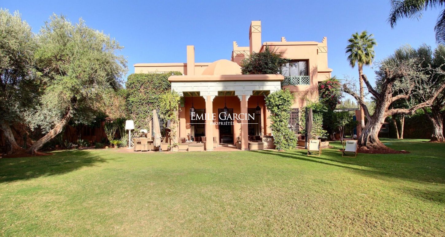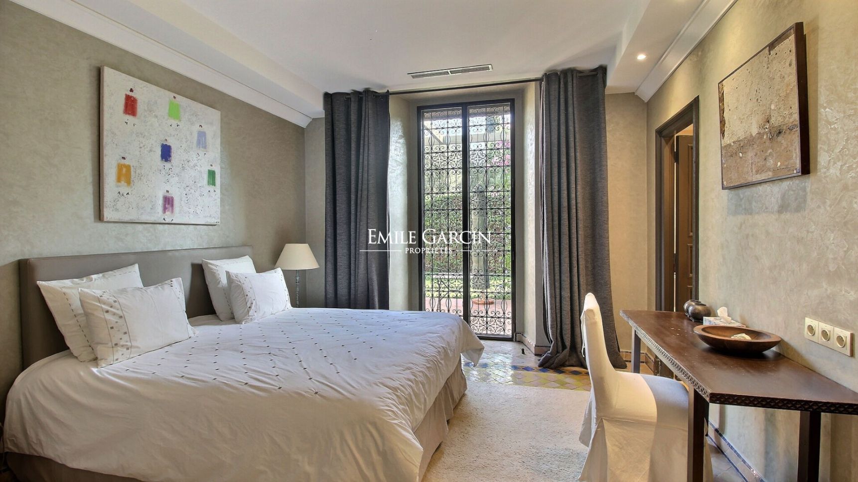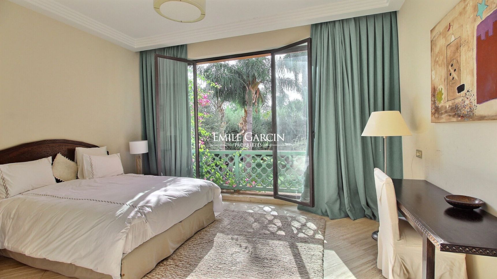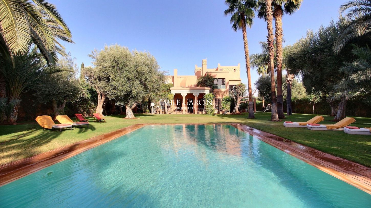 This traditional house presents 900 m² of living area on 3500 m² of private grounds on the Amelkis golf complex. Decorated with taste and refinement, the interior features a large triple living room with fireplace, a dining room and seven bedrooms (including six doubles and a children's bedroom with 4 bunk beds). It can accommodate up to 16 people. Its leafy landscaped gardens make it the perfect setting for a relaxing holiday among friends or family. Large heated swimming pool. Ping-pong table, bicycle, hammam and massage room. From 1,875 EUR per night
