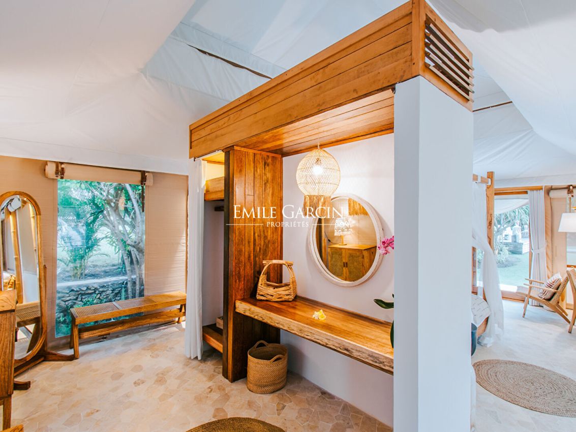 The property is within walking distance of other beautiful beaches like Dream Beach, Mushroom Bay, and Devil's Tear. Additionally, Villa 1 offers an exceptional glamping tent complete with its own ensuite.