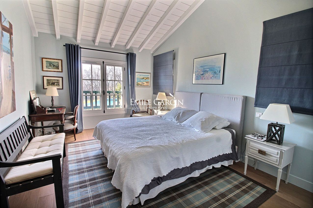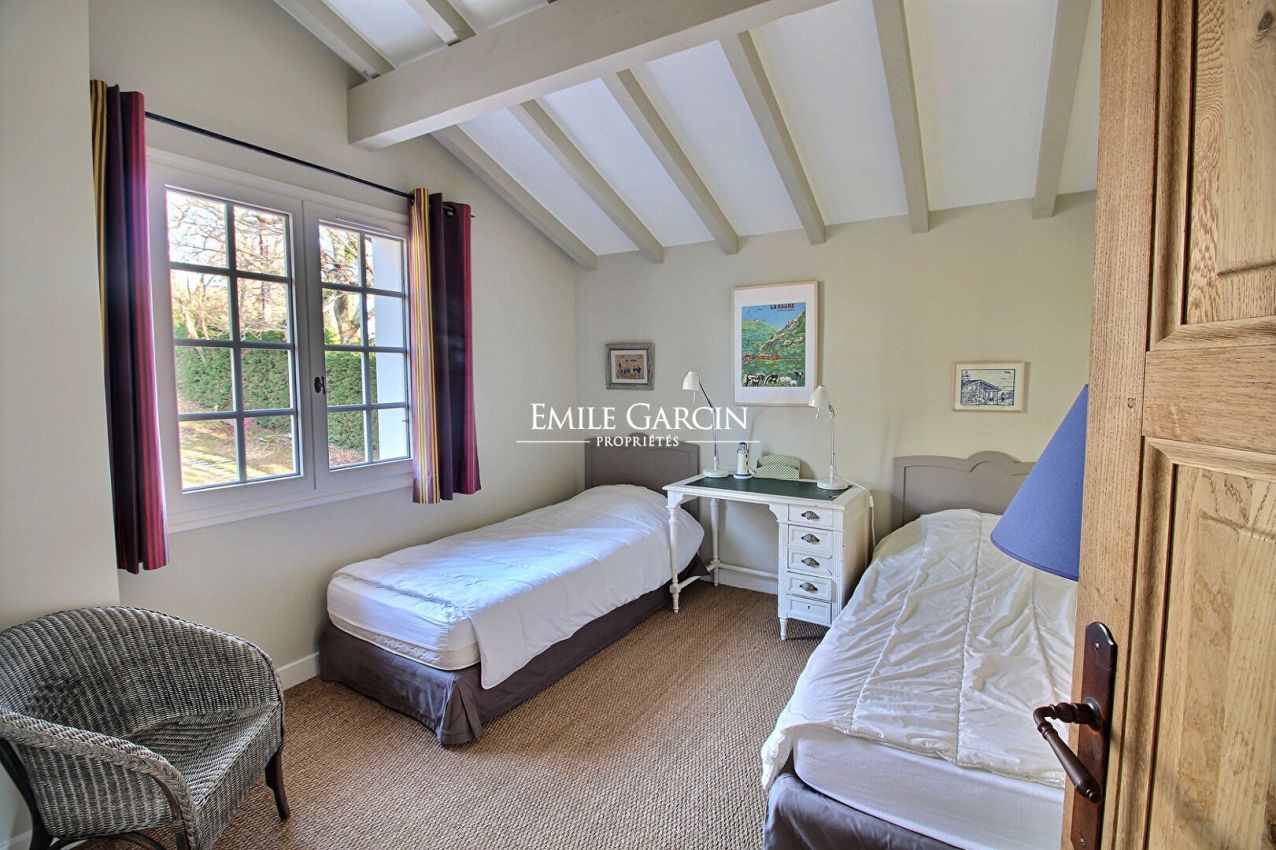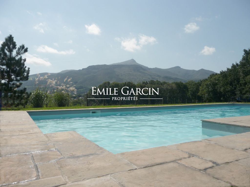 Two beautiful properties to rent between the sea and mountains in Ascain, on the outskirts of Urrugne. Boasting magnificent views of the Larrun, these two houses share 6,000 m² of private grounds but can be rented separately. The first house has a charming decor and can comfortably accommodate 10 people in its 240 m² of living area. It comprises a double living room with fireplace, a separate kitchen with dining room, a home cinema with overhead projector, 5 bedrooms, 3 bathrooms and a shower-room. The second, more contemporary house can accommodate 8 people in 180 m² of living area. It presents a living room with fireplace, an open kitchen, a living room, a home cinema with flat screen TV, 4 bedrooms, a bathroom and 4 shower rooms. The outdoor spaces are equipped with garden furniture and a heated swimming pool (5 x 12m). WIFI Accommodation capacity: 18 people. Please contact us directly for further information and weekly rates, including for the rental of a single property.