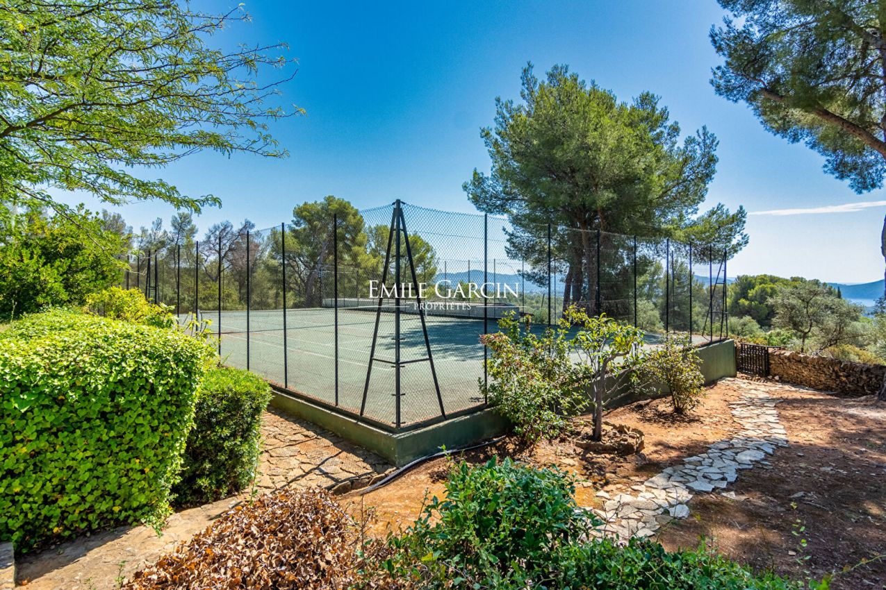 Nestled in a pine forest on the hills between La Ciotat and Saint-Cyr-sur-Mer, Villa Cytharis majestically overlooks the bay and offers breathtaking panoramic views of the Mediterranean. This family-run property, perfectly designed for peaceful stays, charms with its tranquil atmosphere and expansive outdoor spaces. A beautiful swimming pool complex, complete with a fully equipped pool house, invites relaxation and conviviality. The villa comprises seven air-conditioned double bedrooms, one single bedroom, and six bathrooms, comfortably accommodating up to 15 guests. The leisure facilities match the setting: a heated swimming pool, tennis court, pétanque court, and a pool house with a summer kitchen and cold storage. On-site caretakers ensure a convenient and worry-free stay.