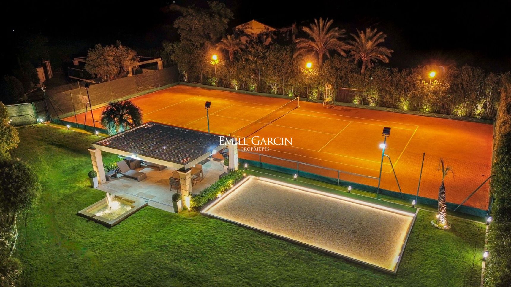 Located in a private and secure domain, property of 320 m2, offering very good services: Hammam, sauna, cinema room, gym. 4 bedrooms, 4 bathrooms Heated and secure swimming pool. Outdoor jacuzzi. Tennis. Ping-pong. A few minutes from the beach. Registration number: 83068 001726 JL
