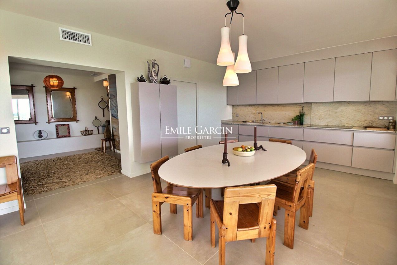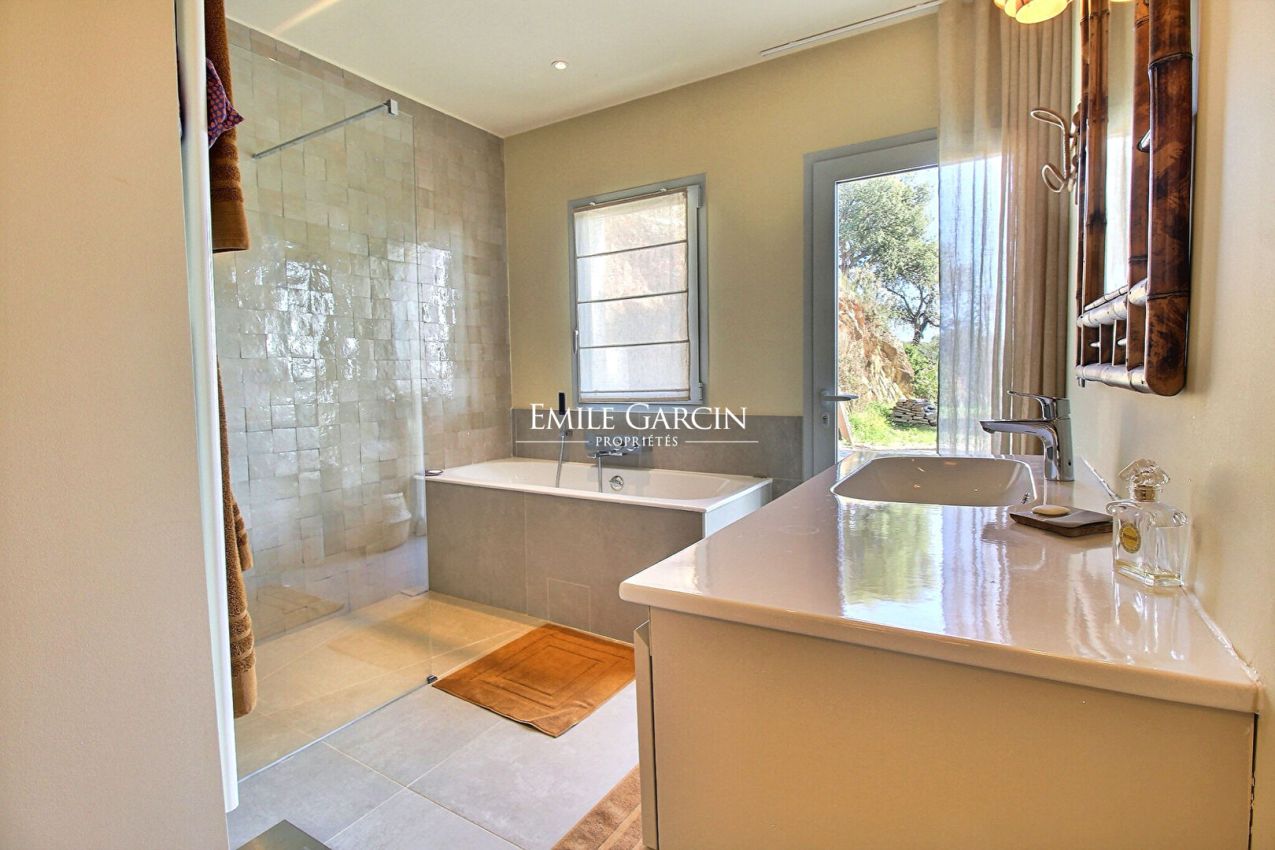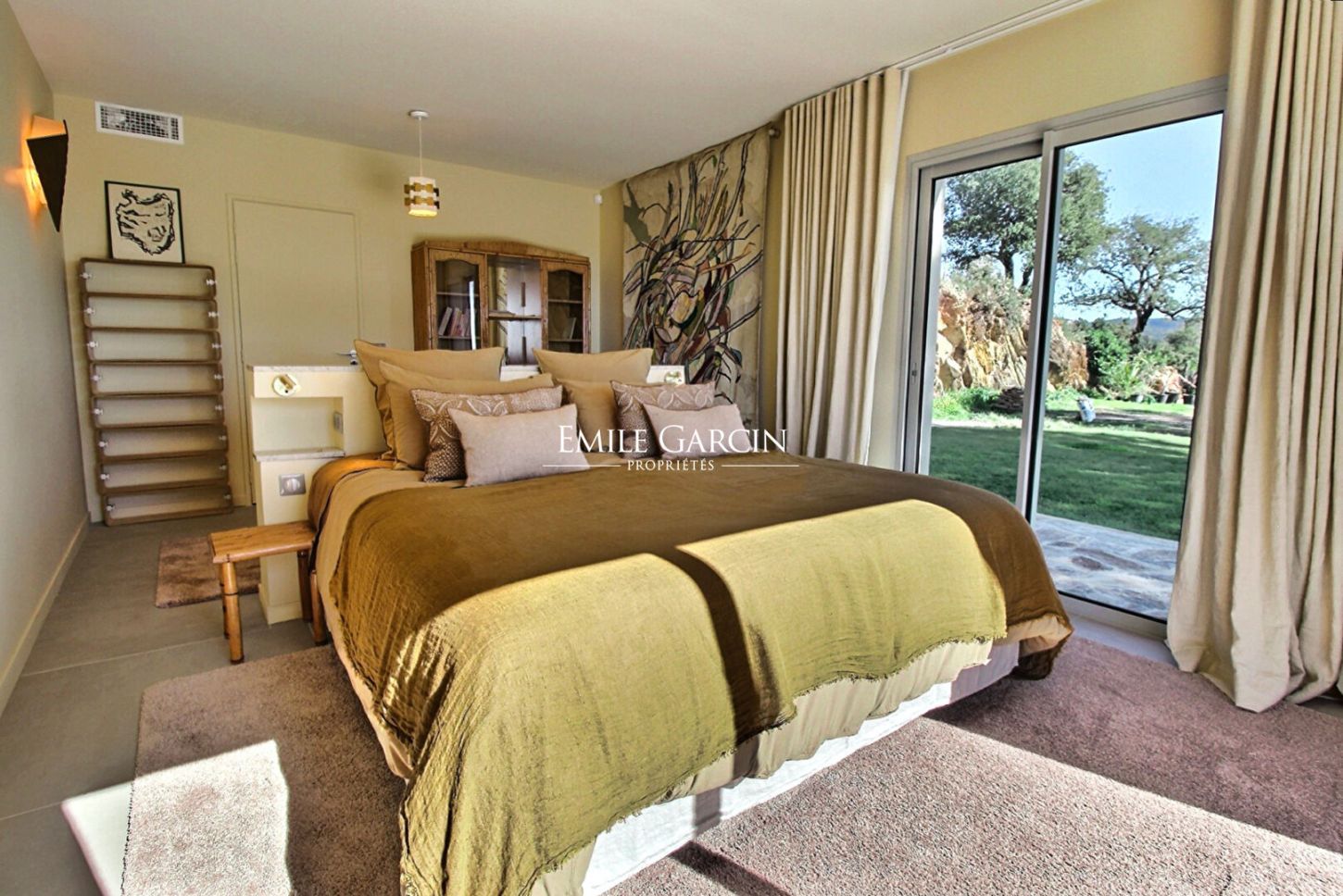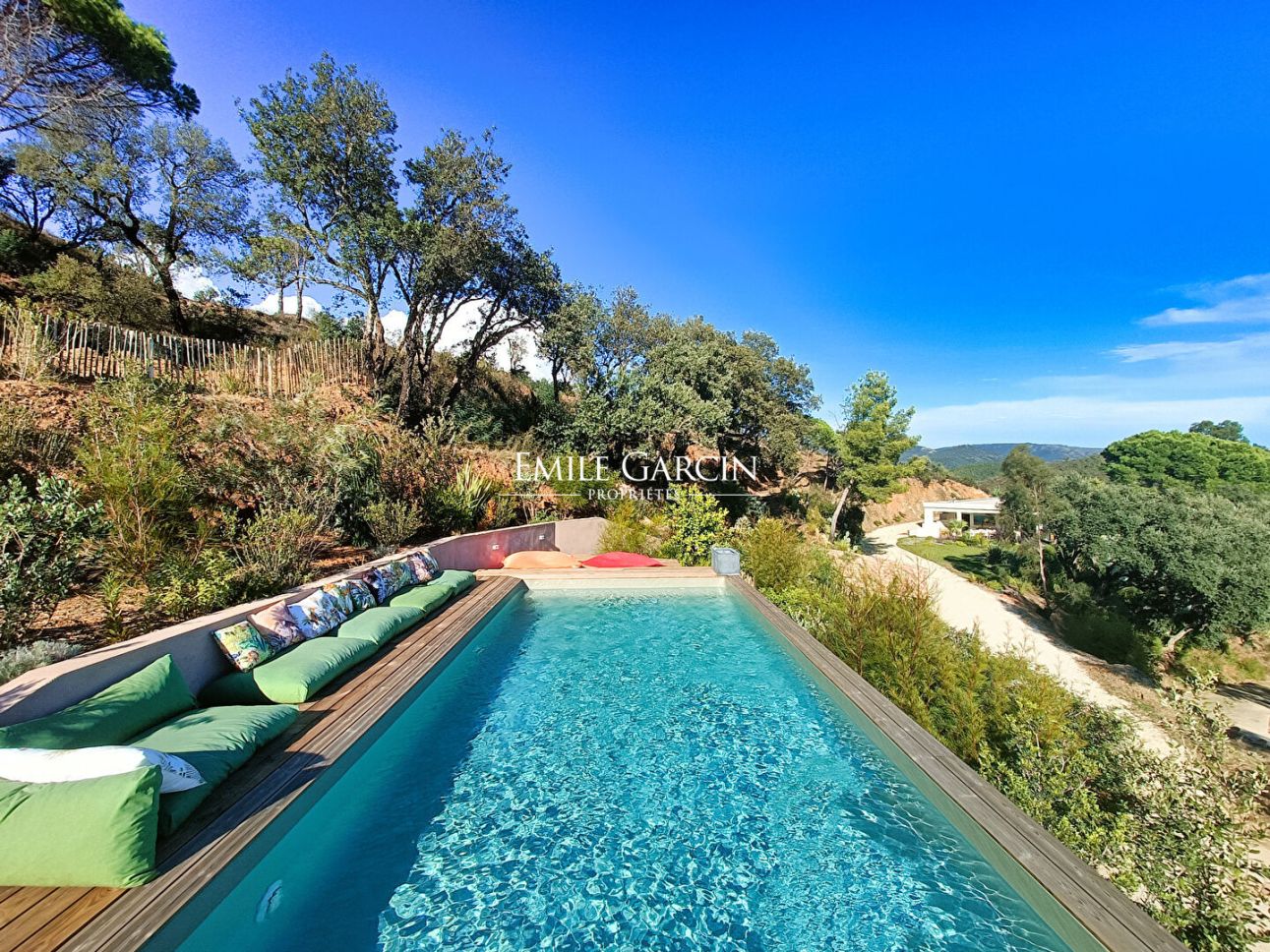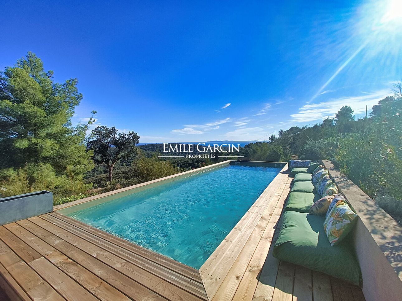 Luxurious contemporary villa nestled on the hillside between scrubland and olive trees, in the heart of a nature reserve. Villa Léoube is a true haven of peace that offers you serenity and absolute calm, ideally located between Provence and the Côte d'Azur. The villa has a breathtaking view of the islands of Porquerolles and Port-Cros. Villa with 7 air-conditioned bedrooms, 7 bathrooms, capacity 14 people maximum. Heated swimming pool, large terrace, sea view, quiet.