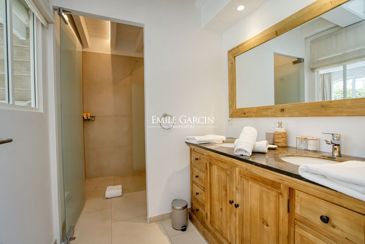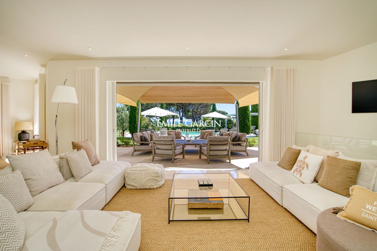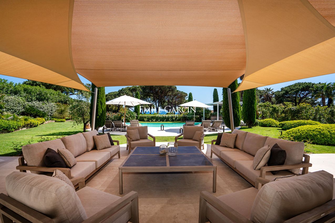 Ideal location for this villa close to the village of Saint-Tropez and within walking distance of the beach. Out of sight, 300m2 property with 6 bedrooms, 6 bathrooms, located on a plot of 2,100m2 with a sea view. The garden offers a secure and heated swimming pool. Ideal for enjoying a holiday with family or friends in complete privacy. Registration number: 83101 000384 CP