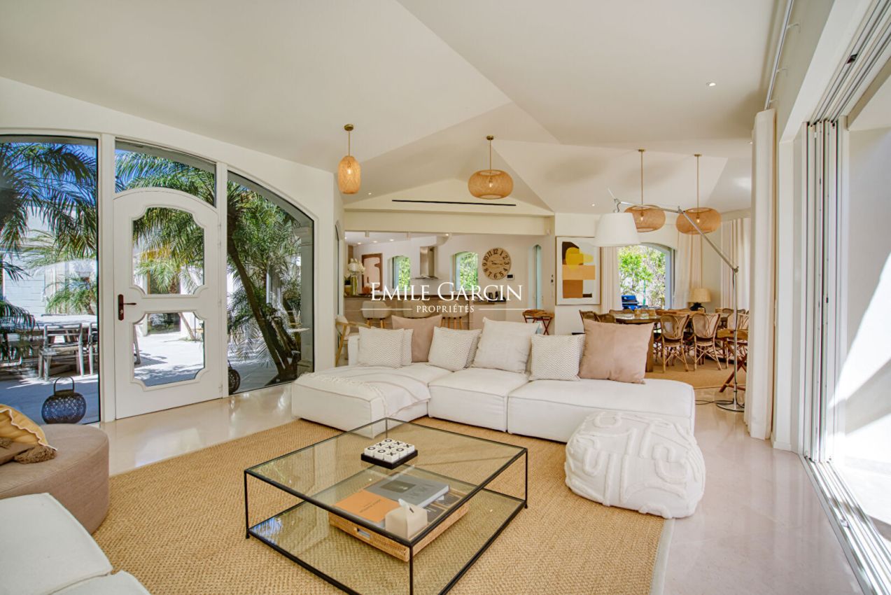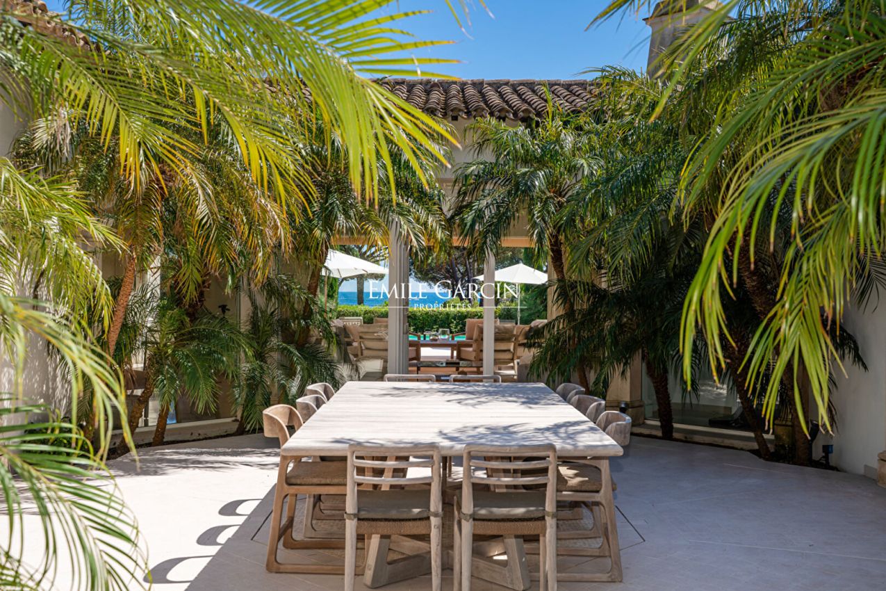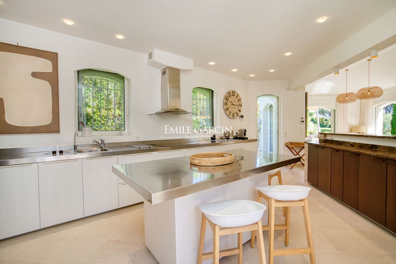 Ideal location for this villa close to the village of Saint-Tropez and within walking distance of the beach. Out of sight, 300m2 property with 6 bedrooms, 6 bathrooms, located on a plot of 2,100m2 with a sea view. The garden offers a secure and heated swimming pool. Ideal for enjoying a holiday with family or friends in complete privacy. Registration number: 83101 000384 CP