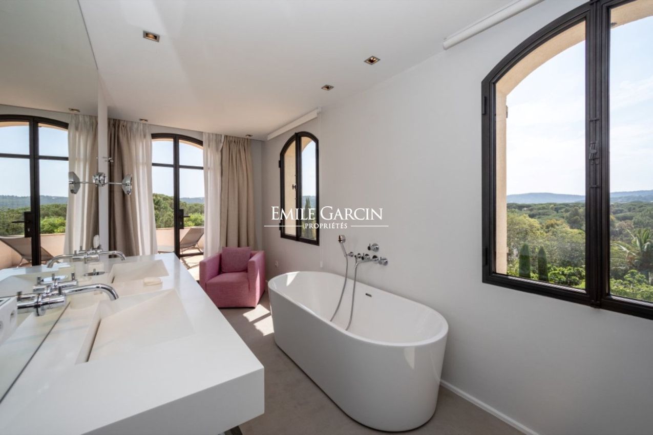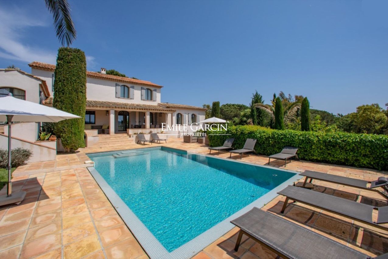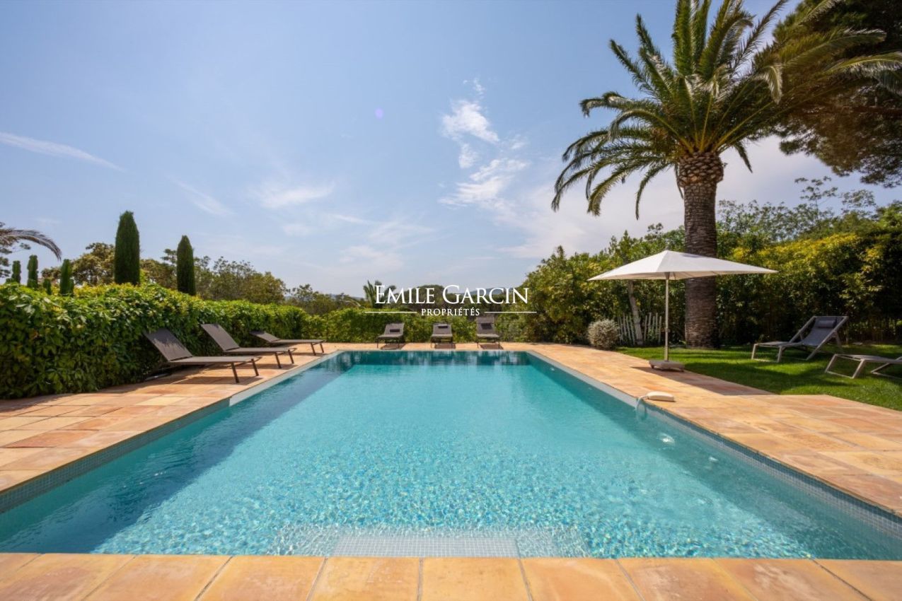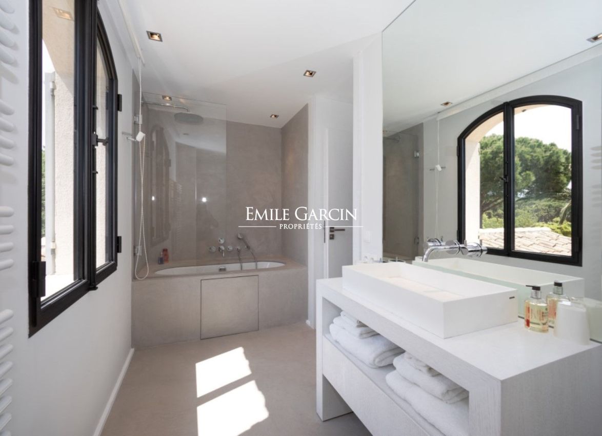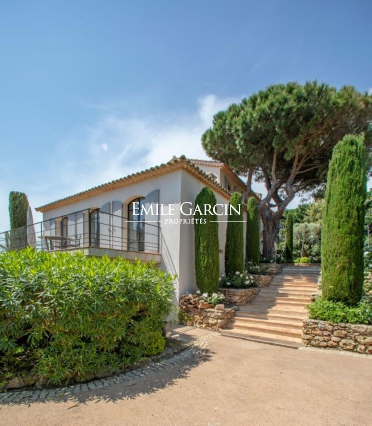 In a prime location on the Saint-Tropez peninsula, overlooking the Pampelonne beaches, this elegantly decorated villa of approximately 350 sq m, spread over three levels, offers a generous living space and a beautiful landscaped garden of 2,000 sq m. Absolute tranquility. Sea views. Walking distance to Pampelonne beach. Heated infinity pool, fitness room. 6 bedrooms and 6 bathrooms.