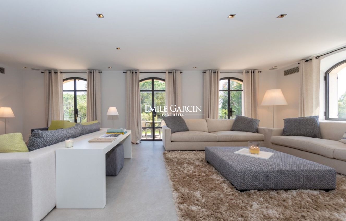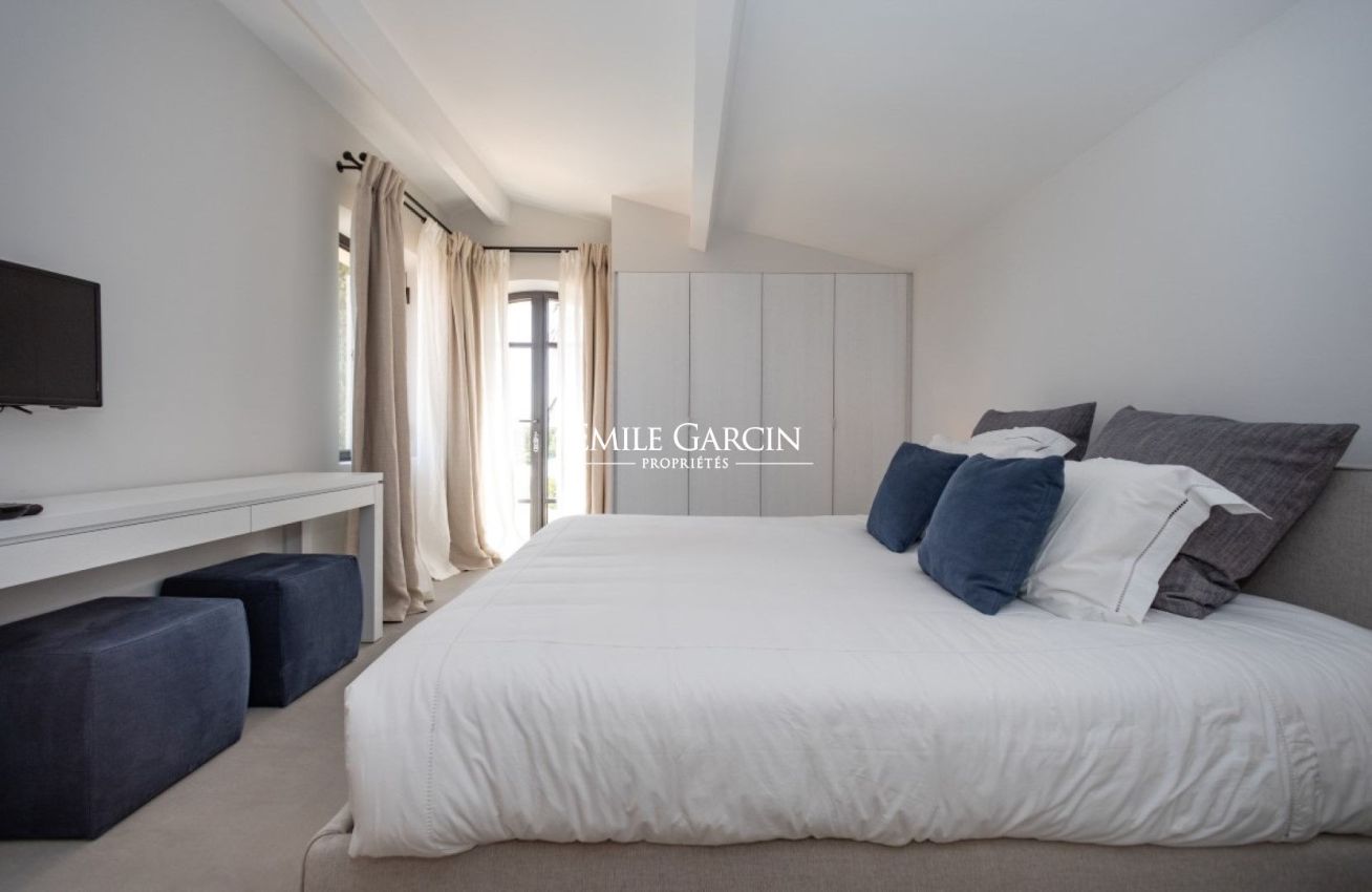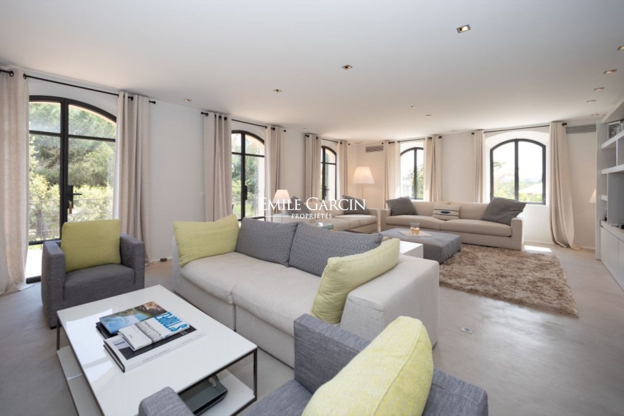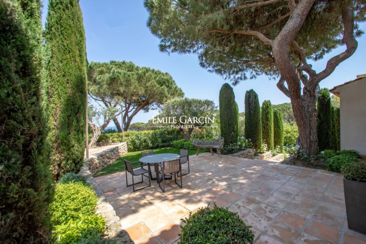 In a prime location on the Saint-Tropez peninsula, overlooking the Pampelonne beaches, this elegantly decorated villa of approximately 350 sq m, spread over three levels, offers a generous living space and a beautiful landscaped garden of 2,000 sq m. Absolute tranquility. Sea views. Walking distance to Pampelonne beach. Heated infinity pool, fitness room. 6 bedrooms and 6 bathrooms.