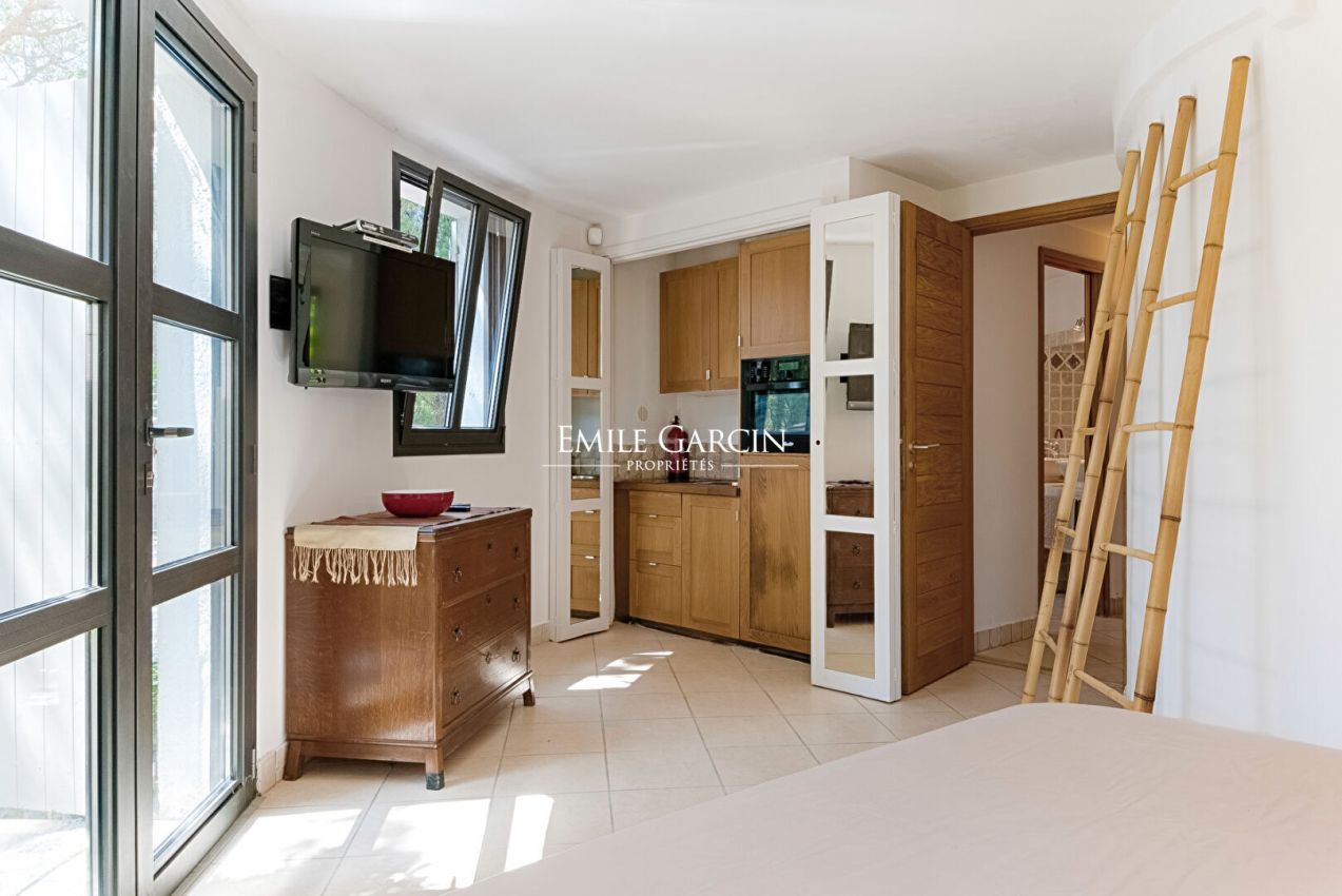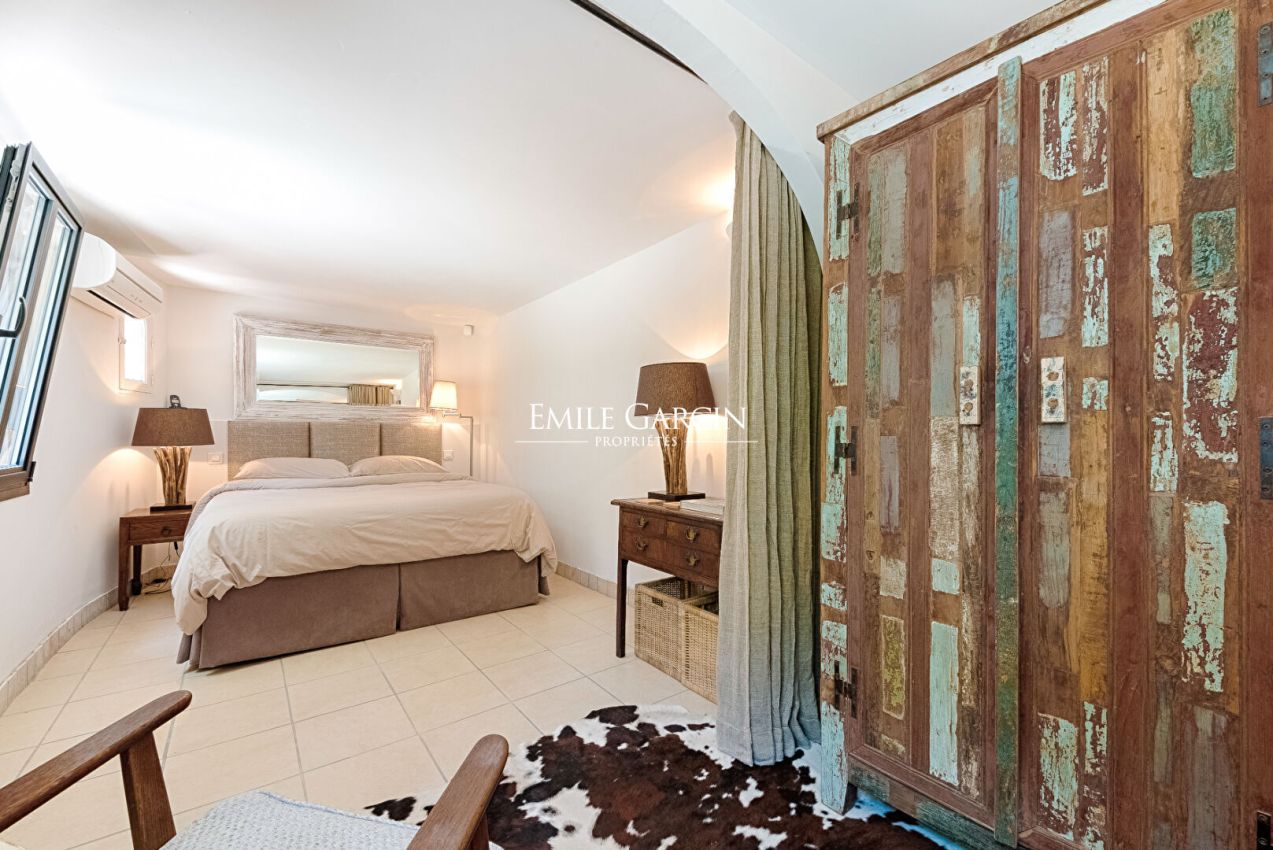 Provencal house of 210 sq.m with a 50 sq.m annex, idyllically located within walking distance of the magnificent beaches of Pampelonne and Gigi. The villa offers you modern levels of comfort in the heart of an intimate garden. Perfect for your family holidays. 5 bedrooms, 4 bathrooms. Secure free-form swimming pool. Furnished terrace. Large car park.