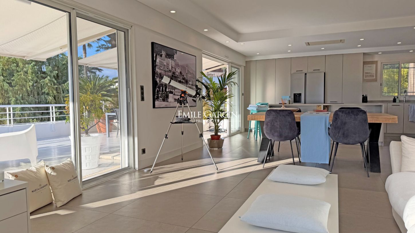 Situé dans le très recherché quartier de la Basse Californie à Cannes, cet appartement d'exception avec toit-terrasse privatif offre un cadre de vie rare, alliant élégance contemporaine, volumes généreux et vue mer spectaculaire. Entièrement rénové, il propose une atmosphère unique, avec un véritable esprit villa, sans les contraintes.