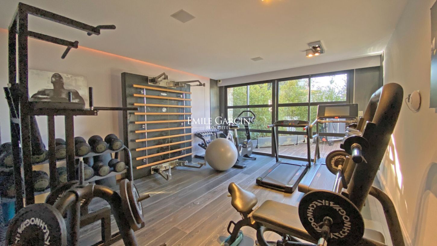 Pour un bien-être total, un espace détente complet comprenant un spa, une salle de massage, une salle de fitness entièrement équipée, ainsi qu'un grand pool house adjacent à une magnifique piscine sont à disposition.