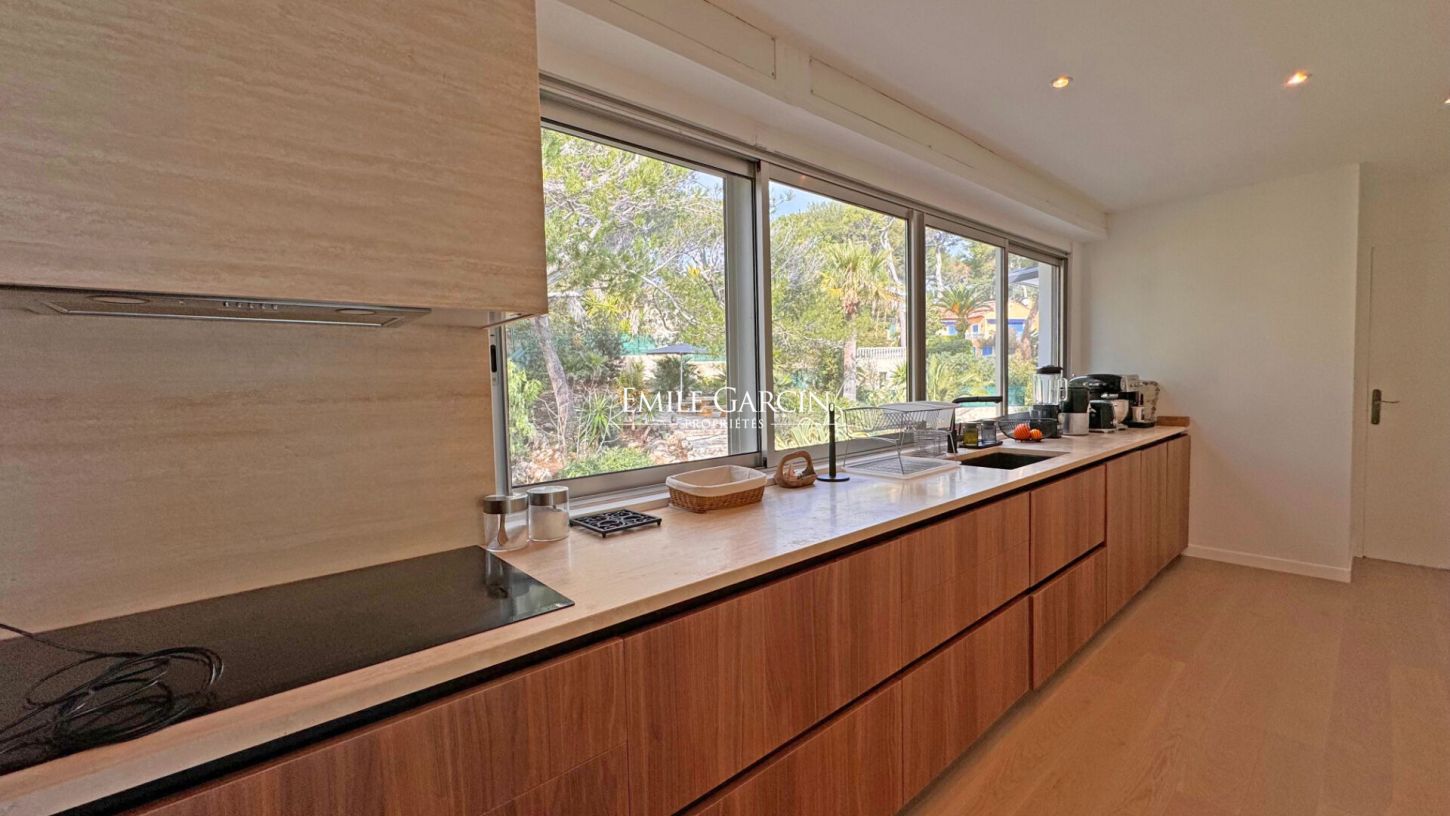 Découvrez cette somptueuse villa contemporaine située dans l'un des quartiers les plus prisés de la Côte d'Azur : la Garoupe, au Cap d'Antibes, cette propriété bénéficie d'un emplacement exceptionnel. Vous êtes à seulement 30 mètres de la mer, offrant un accès direct et rapide à l'eau, et à 800 mètres des célèbres plages de sable de la Garoupe, idéales pour des journées ensoleillées.