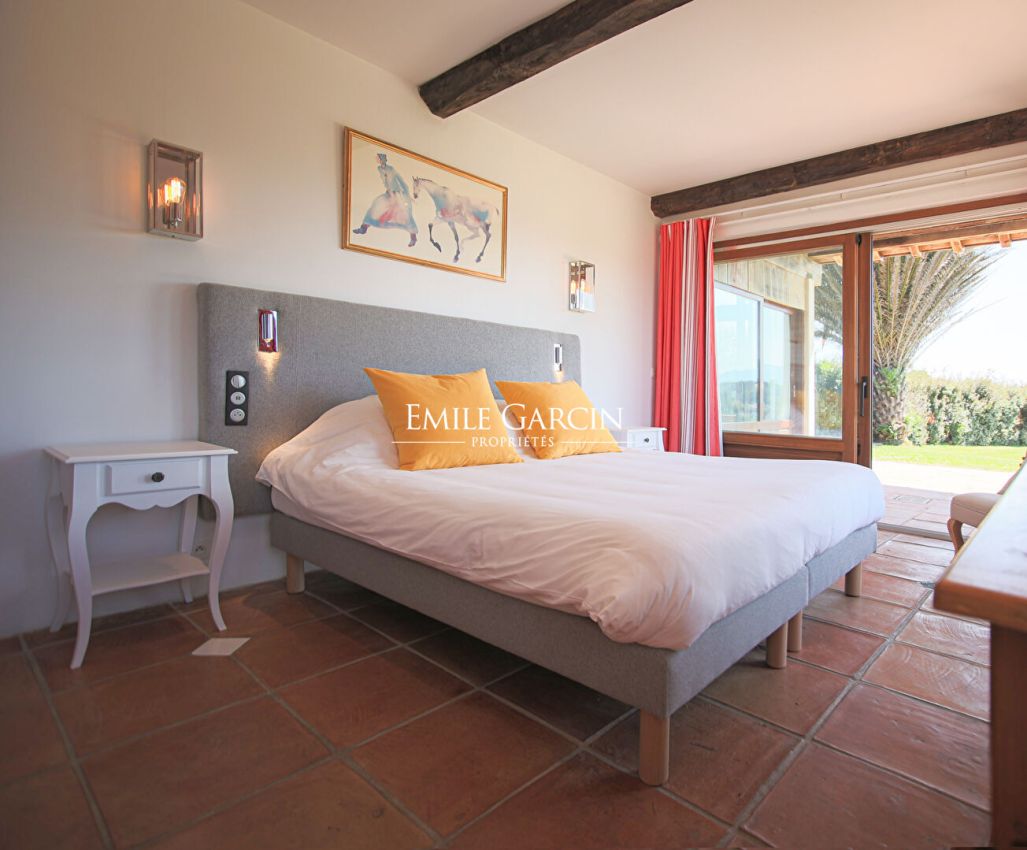 Nichée sur un terrain de 3,5 hectares offrant des vues sur l'océan et les Pyrénées, cette magnifique demeure est l'endroit idéal pour un séjour au calme et en famille. Vous trouverez au rez-de-chaussée une grande pièce à vivre, une belle cuisine, 3 chambres avec chacune leur salle de bain ou salle d'eau. L'étage offre 5 chambres supplémentaires, dont 2 avec salle de bain et 3 avec salle d'eau. A l'extérieur, différentes terrasses équipées de tout le mobilier de jardin nécessaire, un sauna et une belle piscine de 16 x 6 m. Climatisation dans toute la maison.