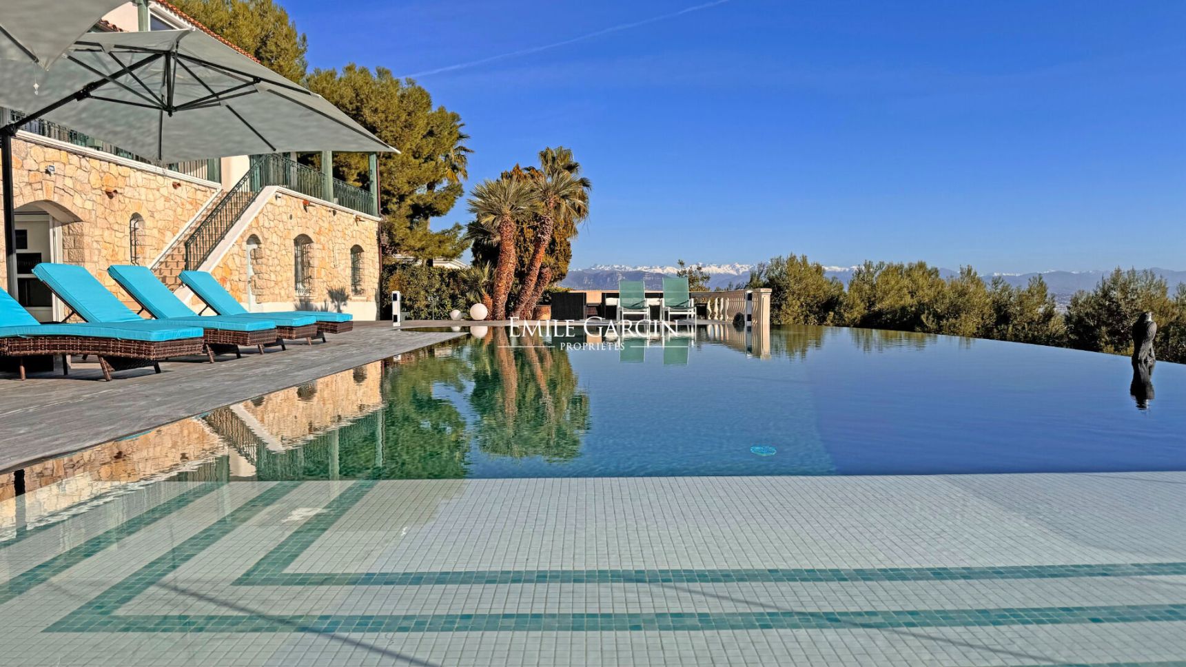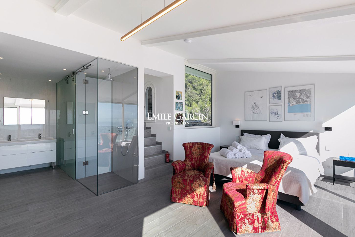 A louer, belle maison entièrement rénovée avec soin. De spacieux espaces idéaux pour une grande famille. De nombreux coins d'extérieur de relaxation offrant des vues spectaculaires sur la mer et sur le célèbre Cap d'Antibes. Cette propriété dispose de 8 chambres avec salles de bains, le tout pouvant accueillir jusqu'à 16 personnes confortablement. Grande piscine à débordement pouvant être chauffée, spa à l'intérieur de la maison avec Jacuzzi chromothérapie et sauna , salle de fitness, table de billard et un sound system intérieur et extérieur.