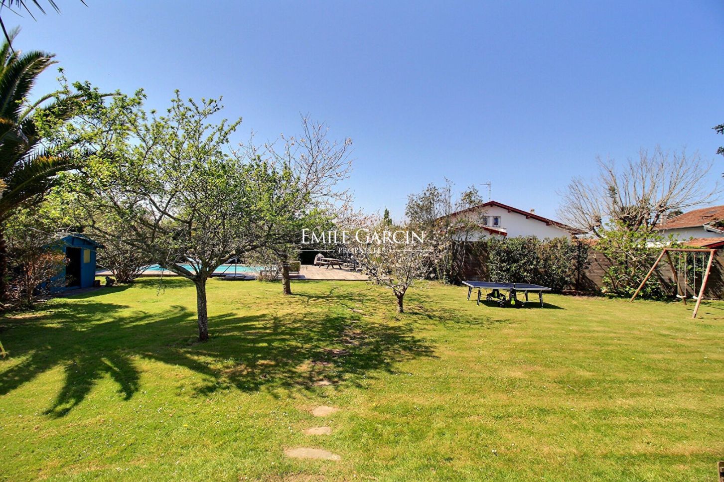 Sur un large terrain arboré, à quelques minutes de la gare de Biarritz, cette maison pleine de caractère est le lieu idéal pour des vacances en famille ou entre amis. Entourée par un jardin dont les multiples recoins sont autant d'espaces pour que chacun trouve son rythme, elle possède une piscine, des balançoires, un panier de basquet et de tout le mobilier pour être aussi à l'aise à l'extérieur qu'à l'intérieur. Elle comprend 5 chambres, deux salles de bain et une salles d'eau, cuisine indépendante, grande salle à manger ouverte sur le salon où trône une immense cheminée. WIFI Tarif à la semaine: nous consulter.