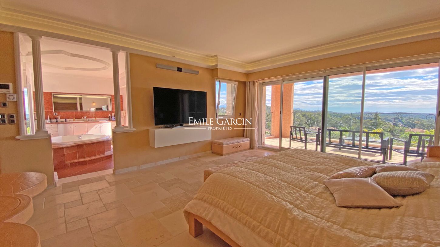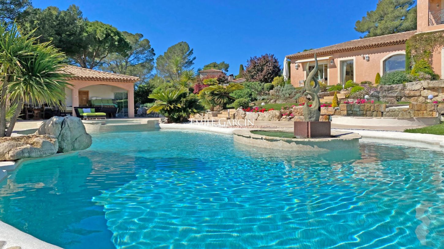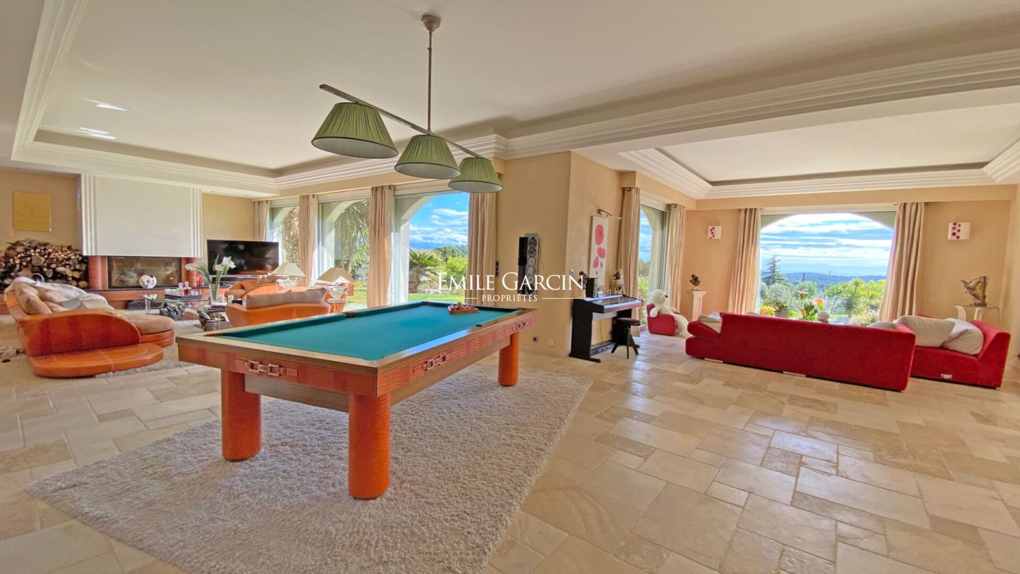 Belle propriété située dans un quartier au calme et sécurisé de Mougins. La maison de 780m2 dispose de 6 chambres doubles en suite sur un parc de 7000m2. De nombreux espaces de détente viendront combler vos envies: espace pour enfants, salle de cinéma, boite de nuit privée, salle de fitness, un grand pool house entièrement équipé avec un baby foot et de nombreux transats et parasols. La grande piscine est accompagnée d'un jacuzzi et d'une fontaine.