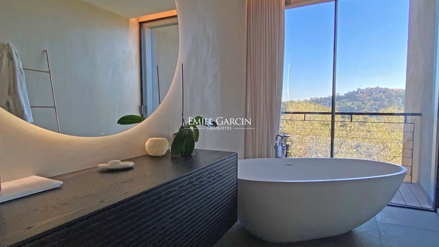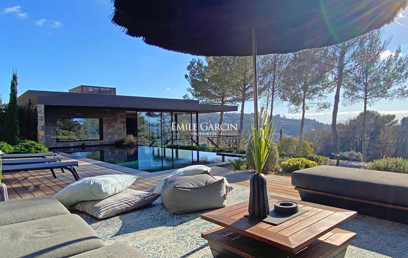 Superbe maison contemporaine entièrement conçue sur les principes de l'art Feng Shui. Située sur les collines de Mougins, cette propriété attirera toute votre attention. Entièrement neuve et implantée dans un écrin de verdure avec des vues dégagées sur les collines environnantes.