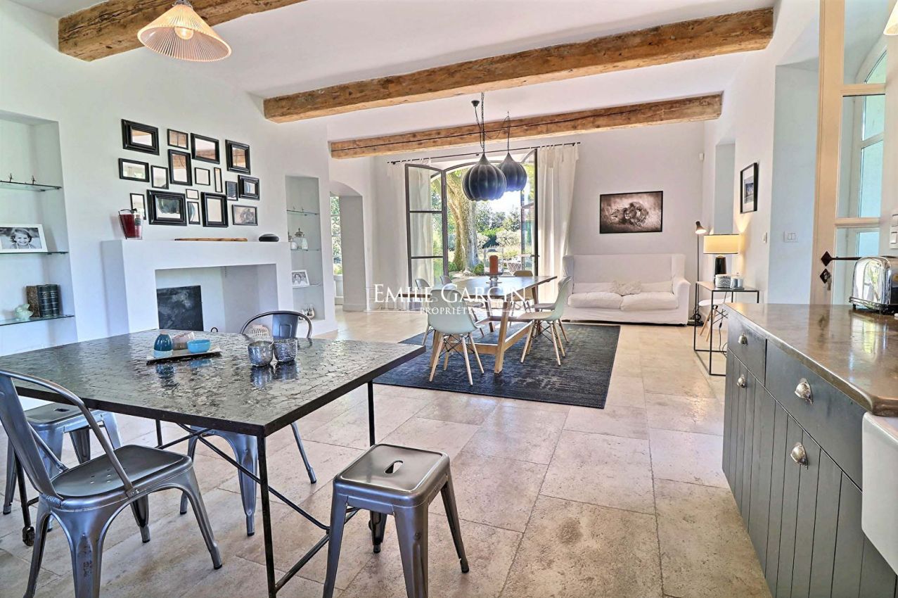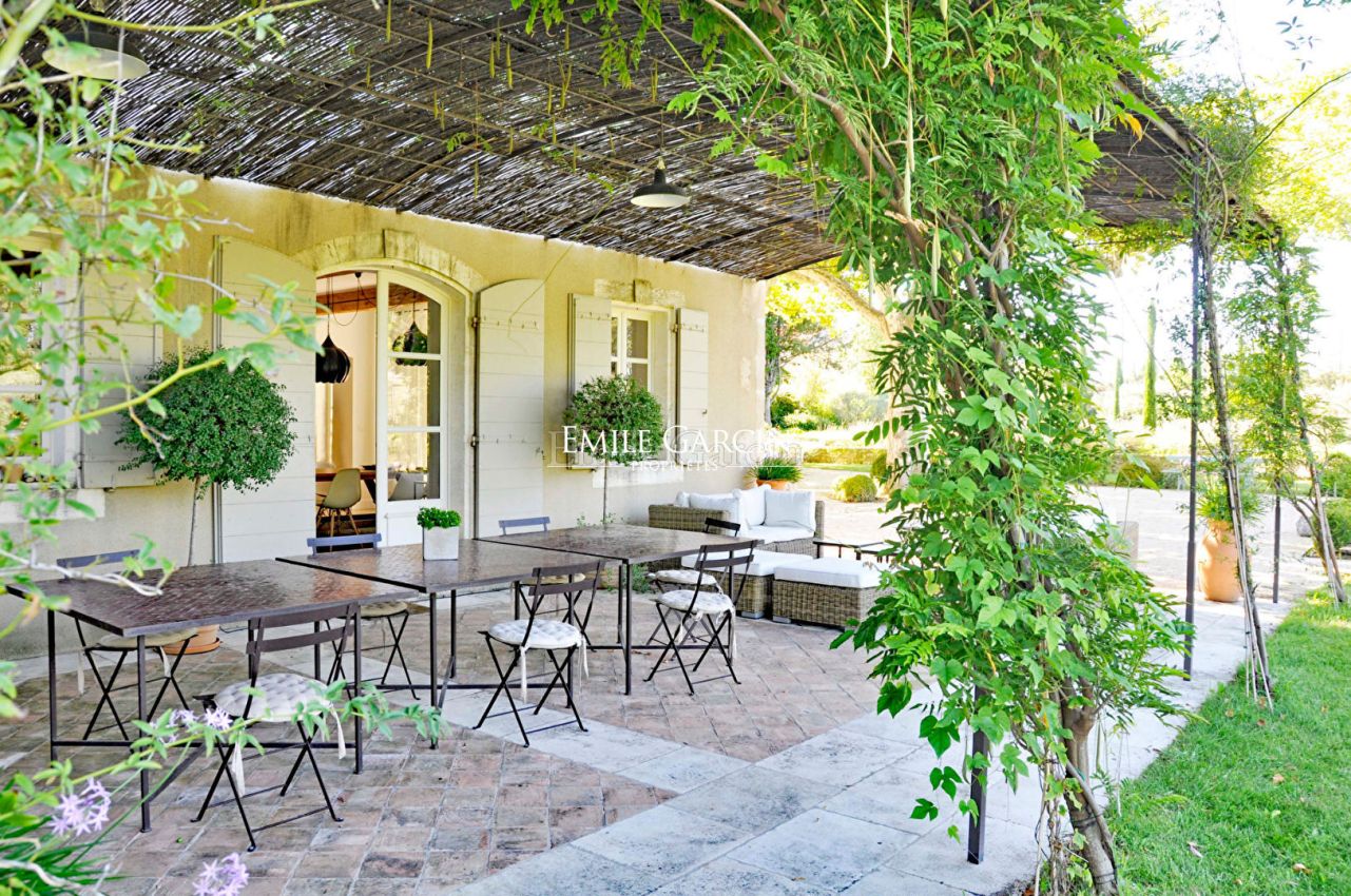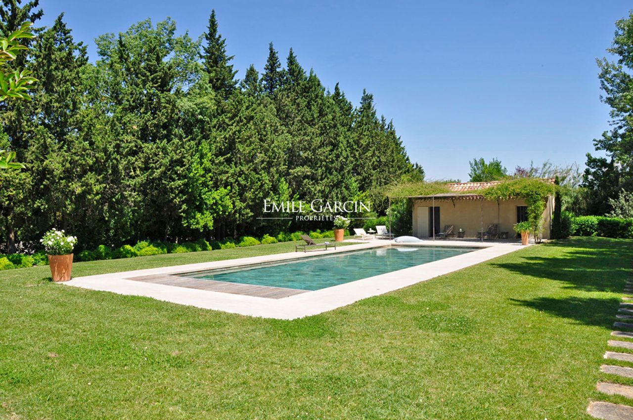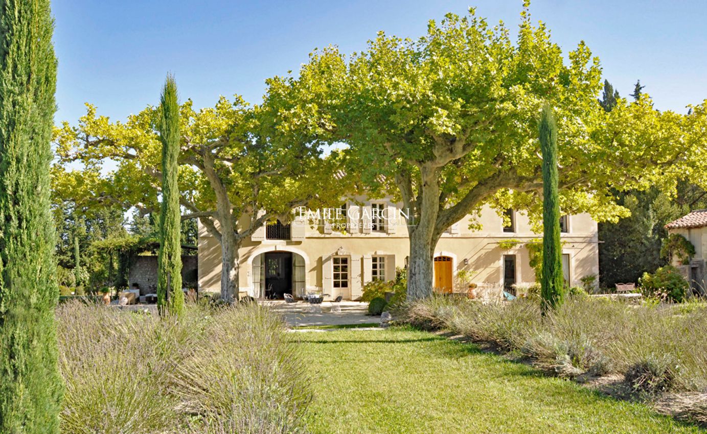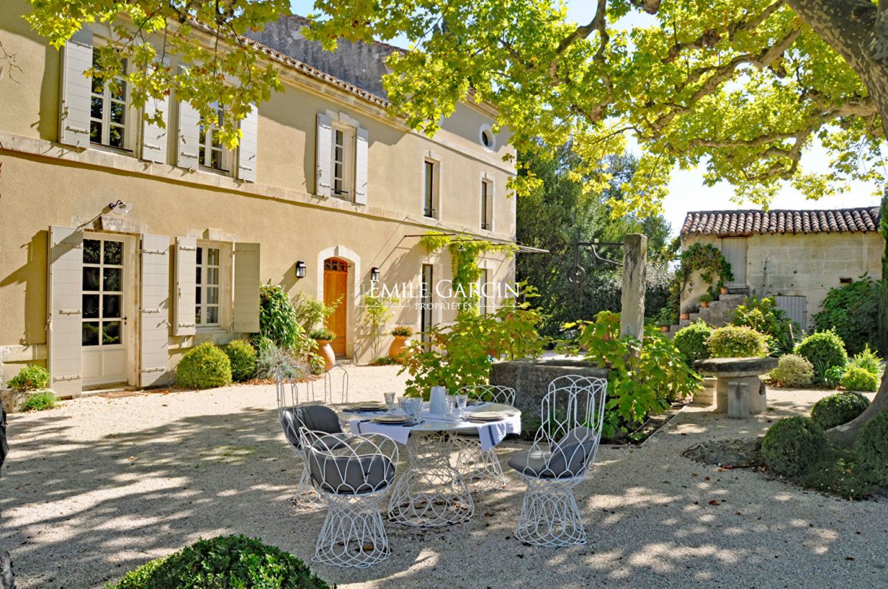 A 5 minutes du centre de Saint-Rémy de Provence, ancienne magnanerie du 19eme siècle rénovée avec goût par un architecte de renom, située dans un environnement de verdure au milieu d'un parc paysagé sur un hectare composé d'essences locales et à l'abri de deux platanes centenaires. Le mas propose des prestations haut de gamme (entièrement climatisé, 6 chambres dont deux chambres master avec sdb en suite, 4 sdb en tout), des matériaux authentiques et une décoration raffinée. Grand bassin de natation (16/6m) au sel et chauffé, sécurisé par un volet automatique. Pool house équipé. Terrain de pétanque, tennis multisports et nombreux espaces extérieurs.