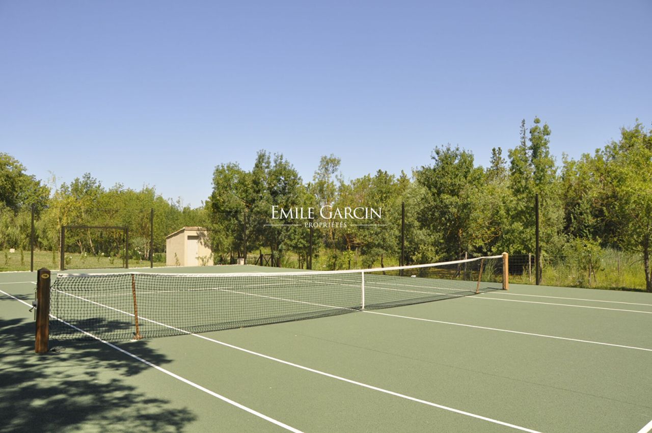 A 5 minutes du centre de Saint-Rémy-de-Provence, ancienne magnanerie du 19ème siècle rénovée avec goût par un architecte de renom, située dans un environnement de verdure au milieu d'un parc paysager sur un hectare composé d'essences locales et à l'abri de deux platanes centenaires. Le mas propose des prestations haut-de-gamme (entièrement climatisé, 6 chambres dont deux chambres master avec sdb en suite, 4 sdb en tout), des matériaux authentiques et une décoration raffinée. Grand bassin de natation (16/6m) au sel et chauffé, sécurisé par un volet automatique. Poolhouse équipé. Terrain de pétanque, Tennis multisports et nombreux espaces extérieurs.