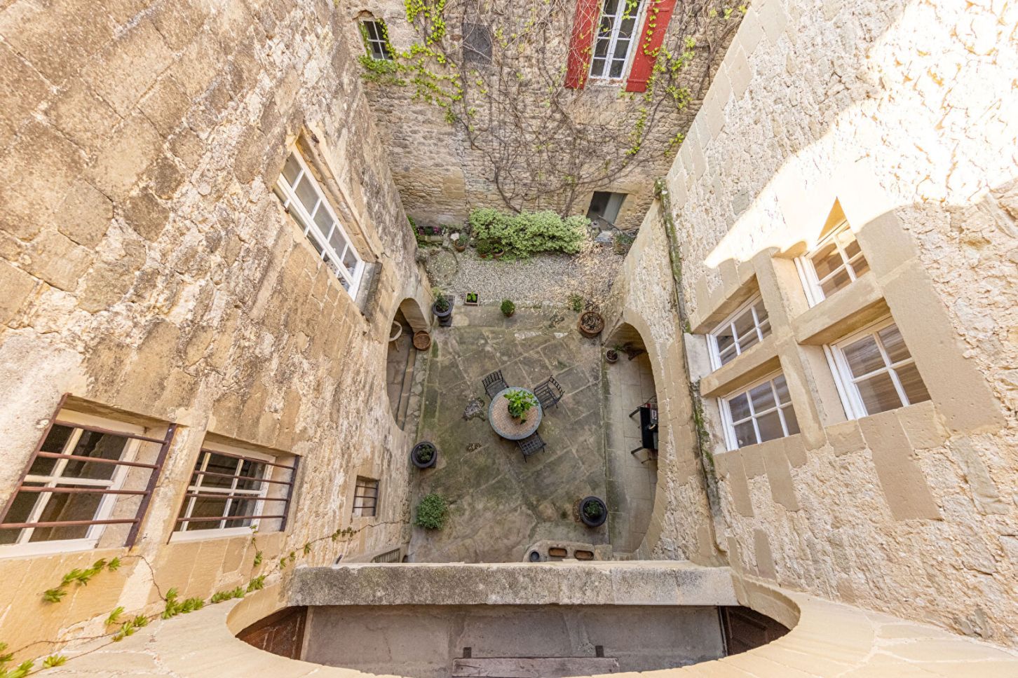 A louer à 5mn d'Uzès, dans un charmant village médiéval, une très belle demeure restaurée avec goût, ancienne partie du château. Les grands volumes des pièces à vivre dont certaines voûtées, les escaliers en pierre agrémentés par de beaux éléments architecturaux, raviront les amateurs de belles pierres. La bâtisse compte 3 spacieuses Suites allant de 30m2 à 50m2 offrant 2 à 4 couchages chacune. Egalement 1 chambre avec salle de bain pouvant accueillir 2 personnes. La jolie cour propose plusieurs espaces tout à fait charmants qui invitent à des déjeuner conviviaux. La sérénité du lieu, le jacuzzi en pierre, la vue sur le château voisin, sont autant d'éléments qui agrémenteront votre séjour. Capacité maximale 10 personnes.