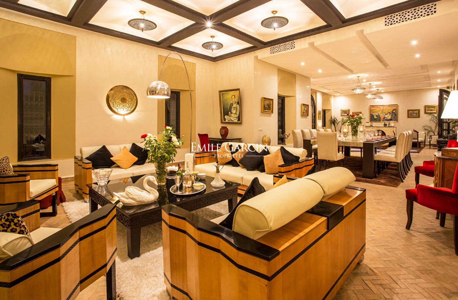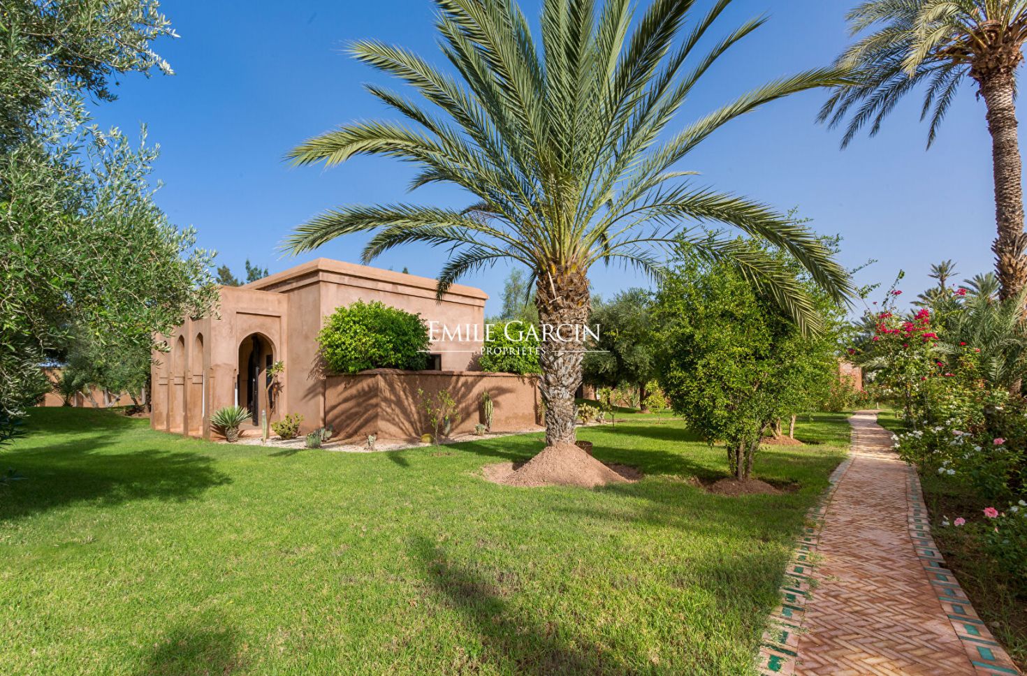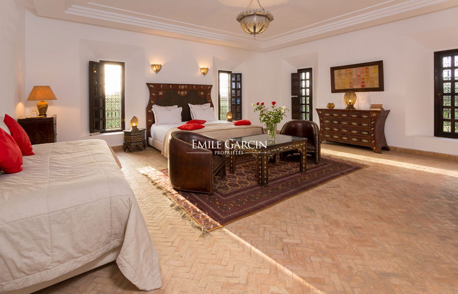 Tout y est pensé pour faire de votre séjour un moment inoubliable : piscine chauffée de 22 m, espace de vie extérieur de 100 m2, spa avec salle de massage, salle de fitness et hammam. Une vue spectaculaire sur l'Atlas vient sublimer le charme de cette demeure.