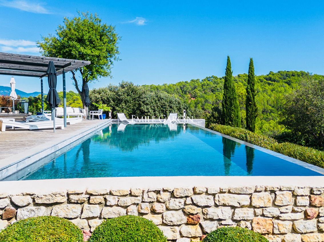 Suspendue au-dessus de la vallée du Luberon, la Villa Utopie porte bien son nom : un véritable sanctuaire de sérénité, caché du monde, où luxe et nature s'unissent en parfaite harmonie. Dès votre arrivée, l'immensité du paysage vous enveloppe, tandis que la piscine à débordement de 18 x 5 mètres semble se fondre dans l'horizon. Ici, le temps ralentit. Chaque pièce de cette villa d'exception de 560 m² a été pensée pour offrir un confort absolu, entre élégance contemporaine et touches provençales. La décoration soignée, les matériaux nobles et la lumière omniprésente créent une atmosphère à la fois chaleureuse et raffinée.