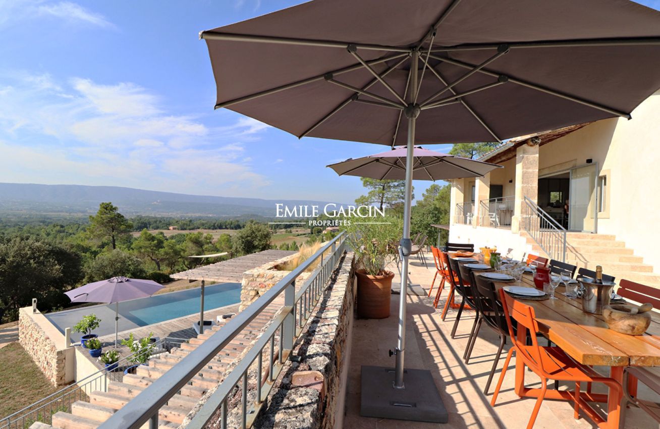 Située sur les hauteurs de Roussillon, à seulement 50 minutes de la gare TGV d'Avignon et une heure de l'aéroport de Marseille, cette adresse exclusive est un véritable refuge loin de l'agitation. Son jardin paysager, son boulodrome et sa table de ping-pong invitent à profiter pleinement de la douceur provençale. Pour un séjour en toute sérénité, un service de ménage hebdomadaire ainsi que l'entretien de la piscine et du jardin sont inclus. Sur demande, des prestations haut de gamme sont disponibles : chef à domicile, soins bien-être, excursions privées ou encore transferts personnalisés. La Villa Utopie, c'est l'alliance parfaite entre intimité, prestige et douceur de vivre en Provence.
