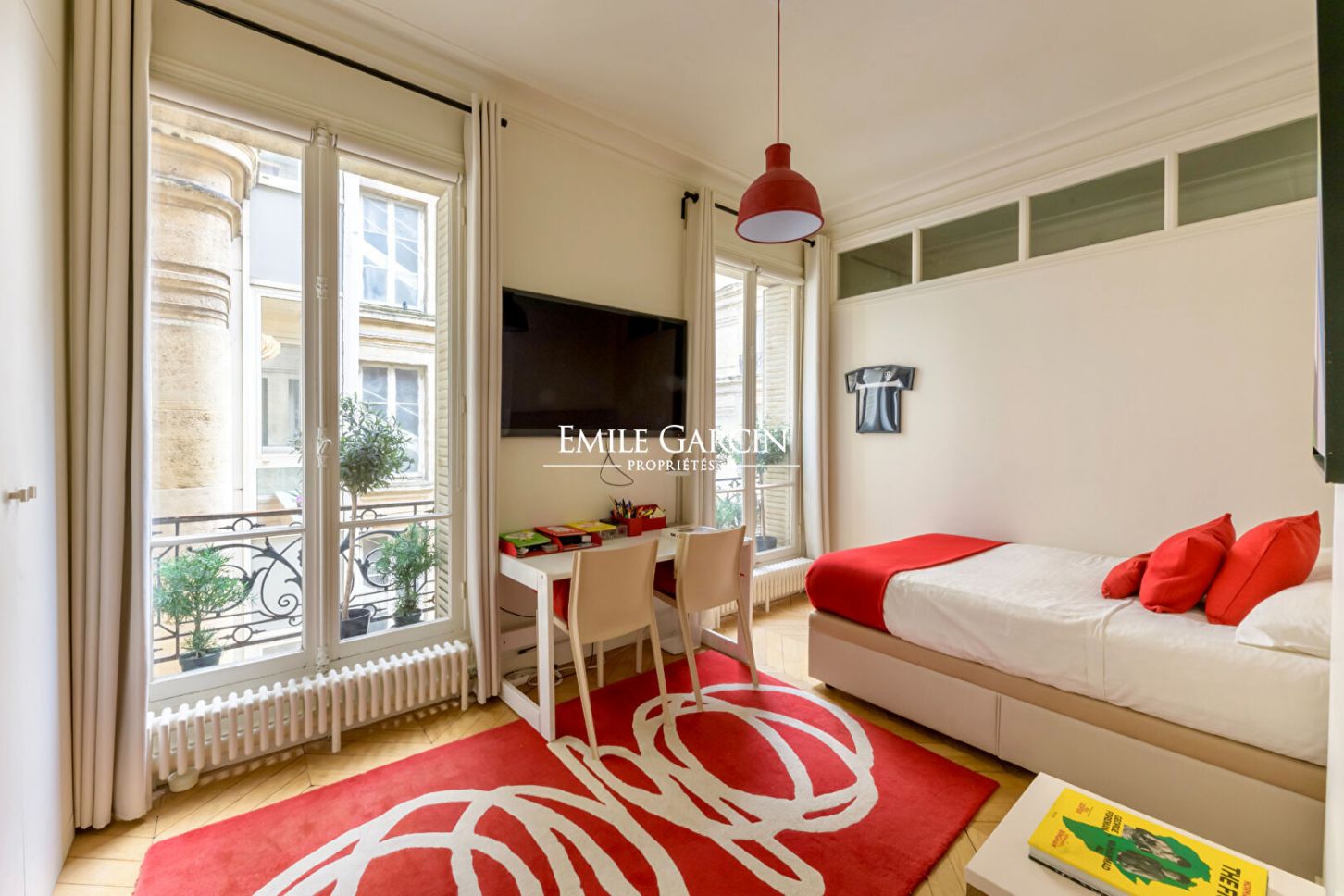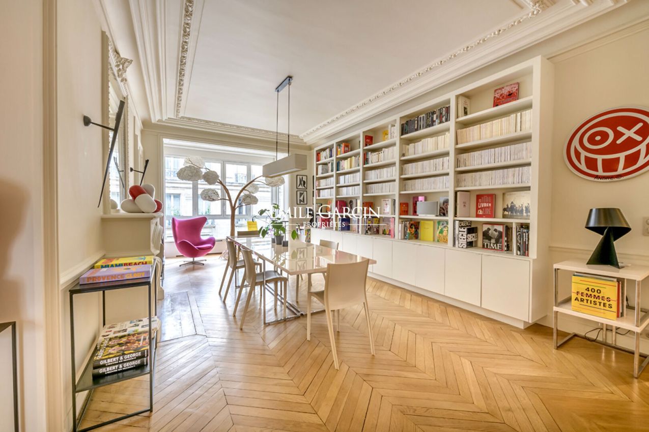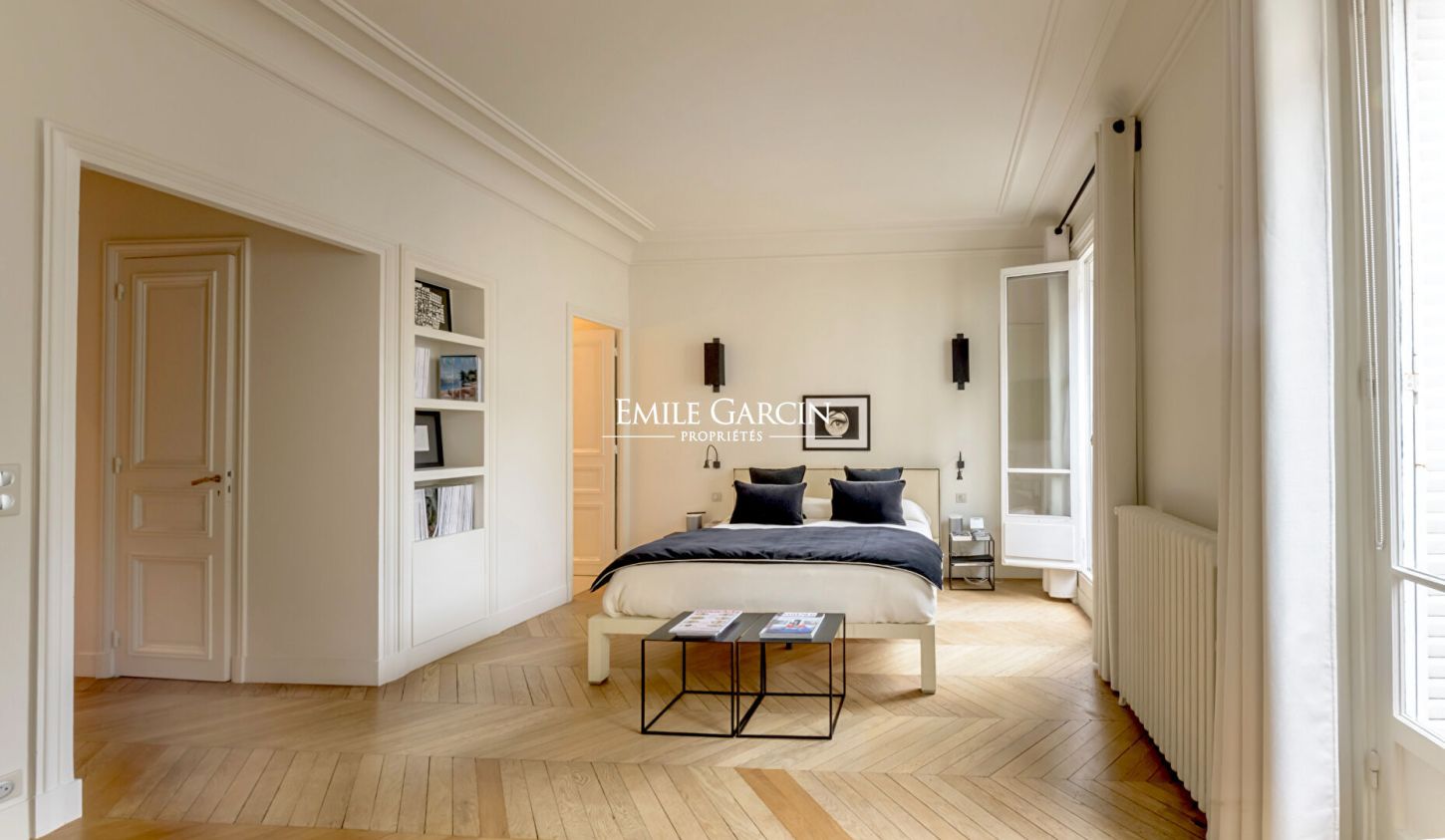 Refait à neuf, ce bien rare séduit par ses volumes généreux, sa hauteur sous plafond de 3 mètres, son parquet en point de Hongrie, ses moulures et ses cheminées. Climatisable. Copropriété de 23 lots ().