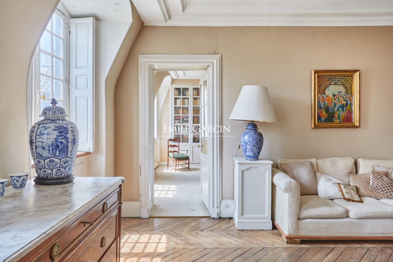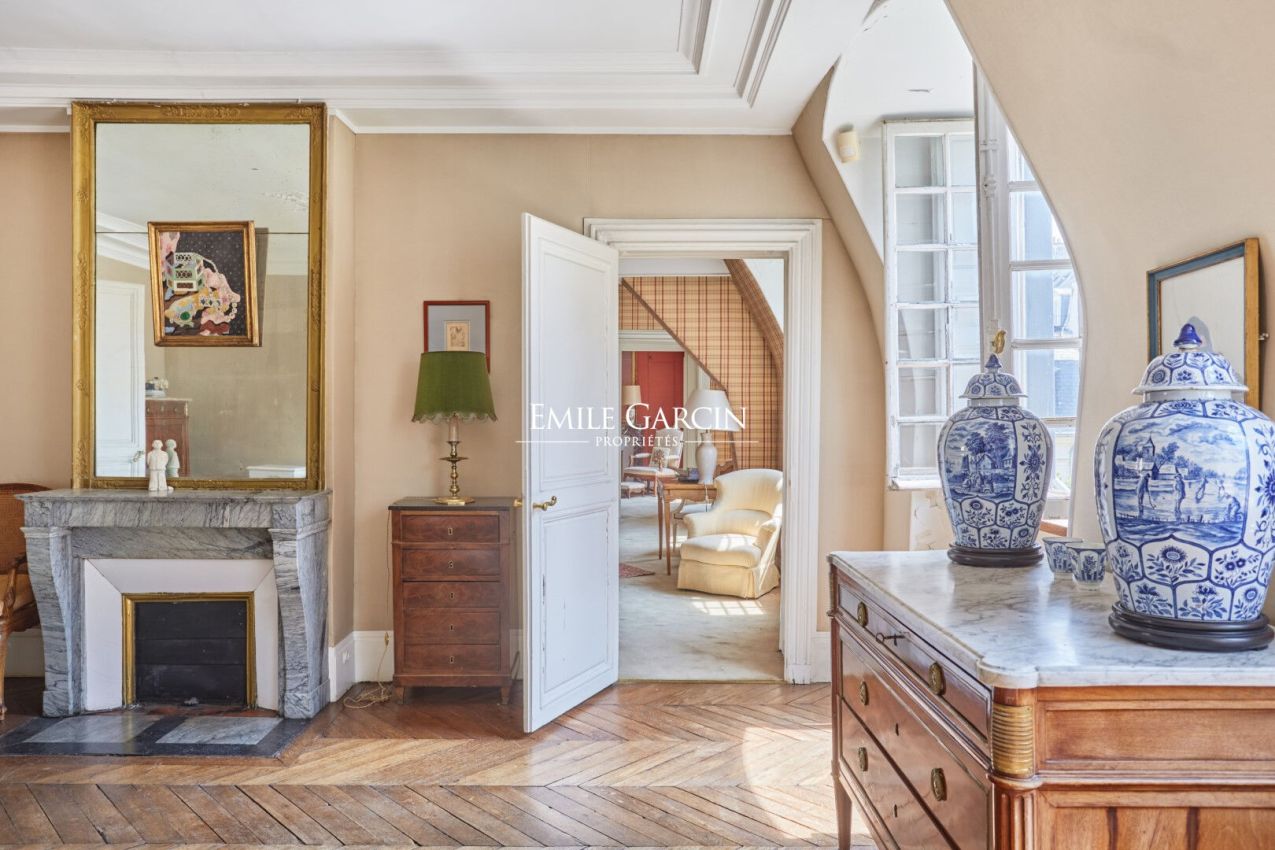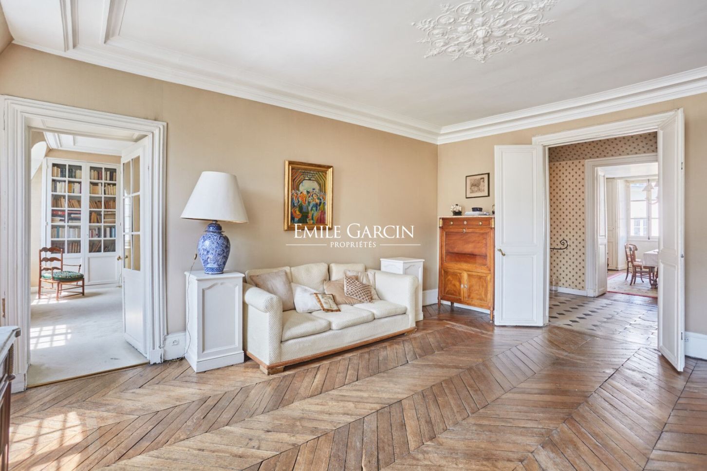Idéalement situé au coeur du très recherché Carré des Antiquaires, dans un superbe hôtel particulier au cachet préservé datant du XVIIIe siècle dont l'escalier d'honneur est classé aux monuments historiques. Au 2ème étage, cet appartement d'exception de 227,4 m² loi Carrez et 239 m² au sol, a un cadre de vie unique. Ce bien traversant exposé Sud et Nord a une luminosité optimale et de beaux vis-à-vis. Il séduit immédiatement par ses volumes généreux, sa hauteur sous plafond de 2,90 m, ses éléments anciens conservés : parquets d'époque, moulures, cheminées ainsi que son plan aéré qui permet une circulation fluide. L'appartement se compose de plusieurs pièces de réception, de chambres confortables et des vues dégagées sur l'environnement architectural remarquable du quartier. Gardienne à demeure, 2 caves.