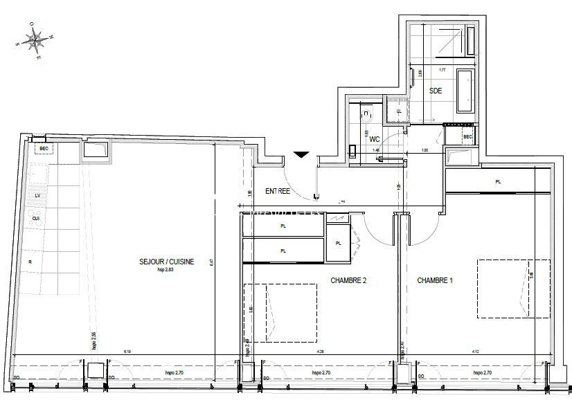 Grand 3 pièces de 95.7m² type atelier tout vitré comprenant, un séjour avec cuisine ouverte d'environ 49m², deux chambres, une salle d'eau avec wc et une buanderie.