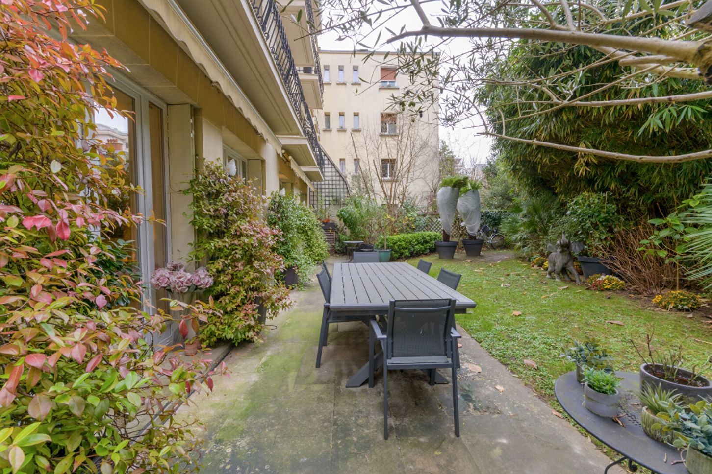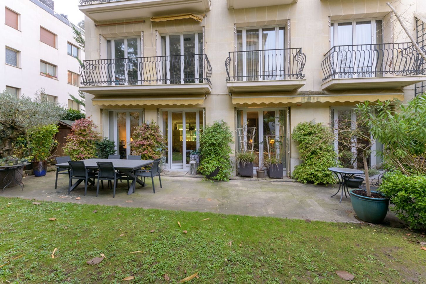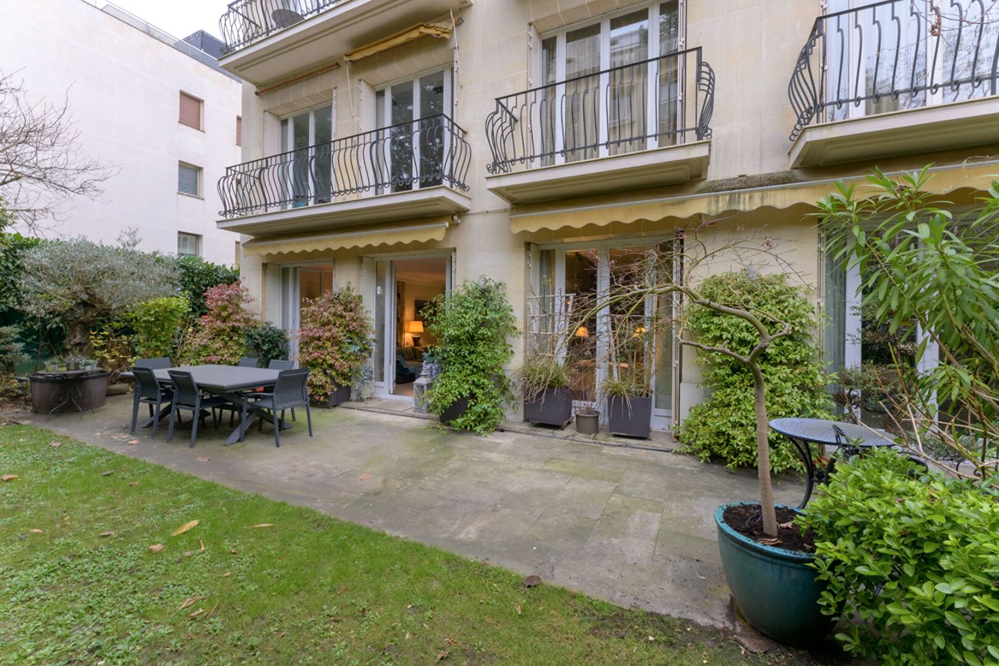 Neuilly-Sur-Seine - Saint-James. Dans un immeuble de standing sécurisé avec gardien, cet appartement en rez-de-jardin offre une superficie de 110 m² et s'ouvre sur un jardin arboré de 200 m² sans vis-à-vis avec accès privatif.