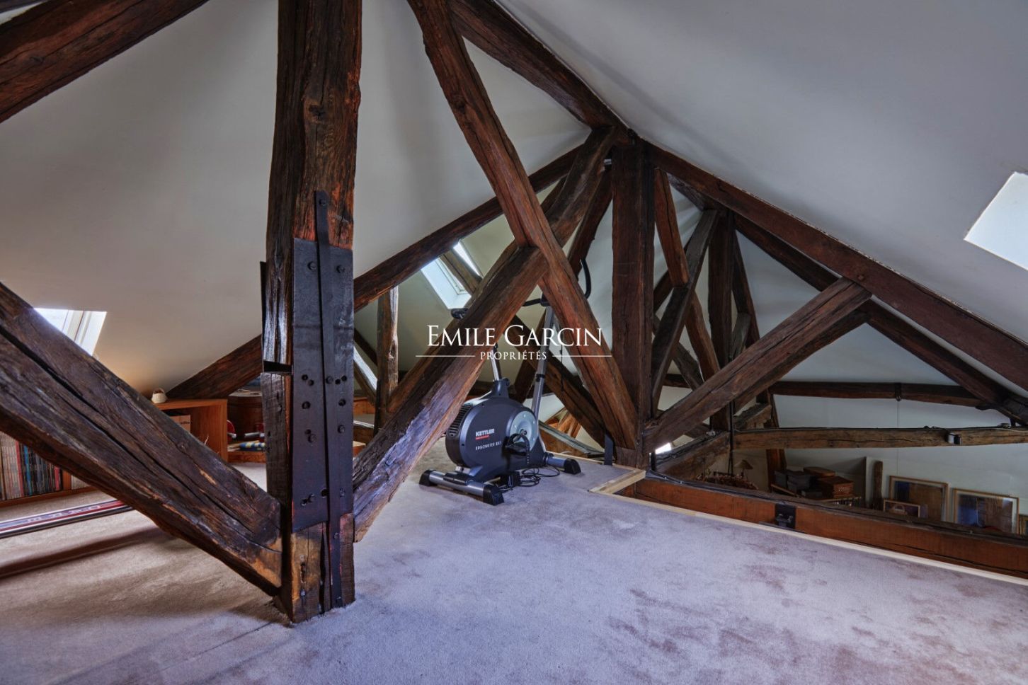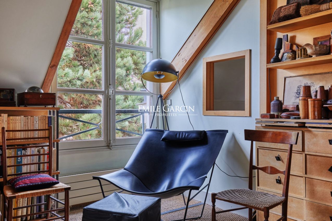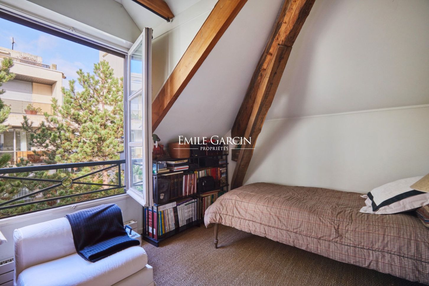 Appartement de 152 m² (112m² Loi Carrez) implanté sous la toiture d'un hôtel particulier du XIXème siècle au deuxième étage, desservi par une très belle cage d'escalier. Cette maison de caractère est entourée de jardins arborés d'une petite copropriété dans le quartier Longchamp/ St James, à deux pas du lac St James, du métro Pont de Neuilly, des commerces ; ce bien incarne idéalement ce que l'on appelle le "Neuilly village". L'appartement s'organise autour d'un très grand séjour (60m²) sous charpente, d'une cuisine éclairée par deux fenêtres, d'une entrée avec toilettes et dressing, de 2 chambres entre lesquelles s'intercale une salle bains éclairée naturellement et modulable en deux espaces permettant de séparer l'espace baignoire, toilettes et bidet de celui des lavabos- dressing ainsi qu'une douche indépendante et un espace bureau- bibliothèque. Donnant sur le volume du séjour sous charpente se trouve un grenier et une mezzanine / espace polyvalent étant soit un espace de nuit, soit un espace de détente ou de sport. Connecté à la cage d'escalier, au sous-sol, ce bien se complète par une cave voutée en pierre et un parking pouvant accueillir deux voitures ou trois petites citadines. Ce bien atypique et exceptionnel est un écrin de part ses nombreux aménagements personnalisés et sur mesure, ses menuiseries? La chaleur du bois donne le ton à cet endroit si remarquable.