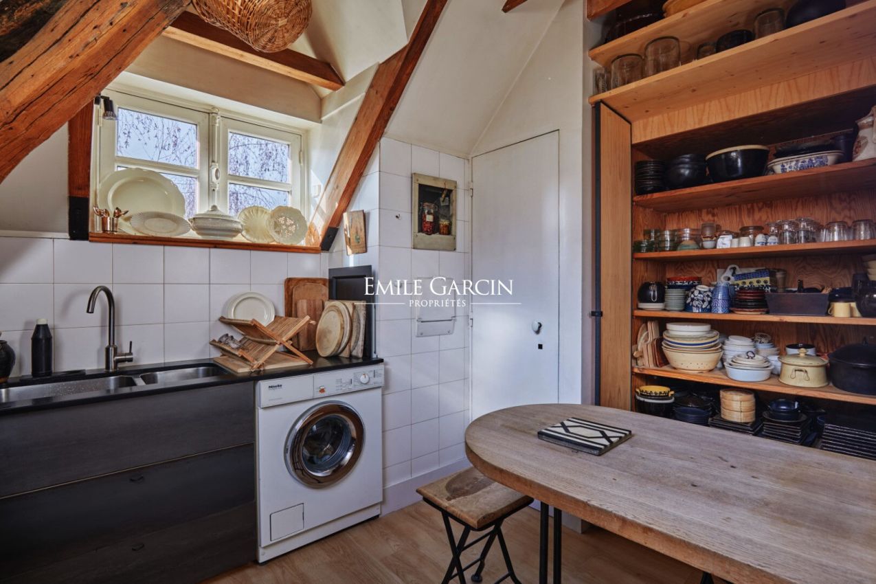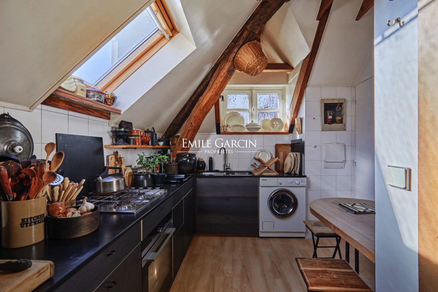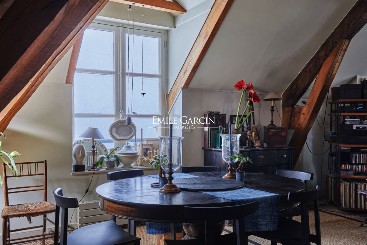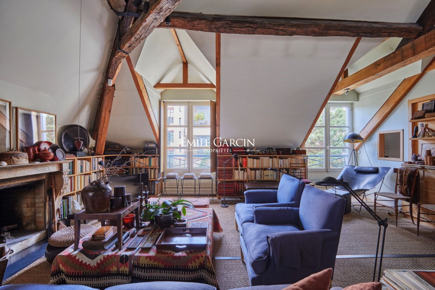 Appartement de 152 m² (112m² Loi Carrez) implanté sous la toiture d'un hôtel particulier du XIXème siècle au deuxième étage, desservi par une très belle cage d'escalier. Cette maison de caractère est entourée de jardins arborés d'une petite copropriété dans le quartier Longchamp/ St James, à deux pas du lac St James, du métro Pont de Neuilly, des commerces ; ce bien incarne idéalement ce que l'on appelle le "Neuilly village". L'appartement s'organise autour d'un très grand séjour (60m²) sous charpente, d'une cuisine éclairée par deux fenêtres, d'une entrée avec toilettes et dressing, de 2 chambres entre lesquelles s'intercale une salle bains éclairée naturellement et modulable en deux espaces permettant de séparer l'espace baignoire, toilettes et bidet de celui des lavabos- dressing ainsi qu'une douche indépendante et un espace bureau- bibliothèque. Donnant sur le volume du séjour sous charpente se trouve un grenier et une mezzanine / espace polyvalent étant soit un espace de nuit, soit un espace de détente ou de sport. Connecté à la cage d'escalier, au sous-sol, ce bien se complète par une cave voutée en pierre et un parking pouvant accueillir deux voitures ou trois petites citadines. Ce bien atypique et exceptionnel est un écrin de part ses nombreux aménagements personnalisés et sur mesure, ses menuiseries? La chaleur du bois donne le ton à cet endroit si remarquable.