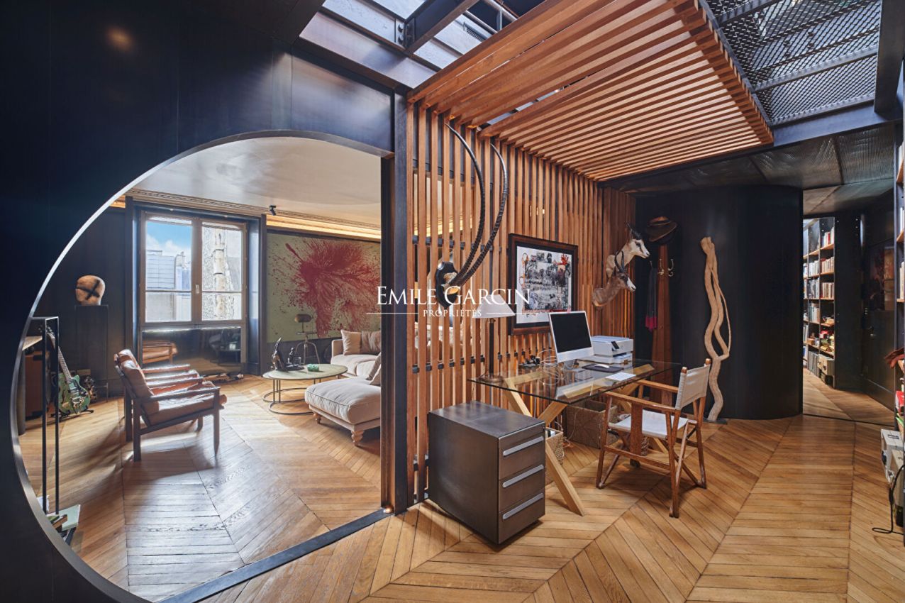 En exclusivité, dans l'élégant Hôtel particulier Leblanc-Barbedienne du XIX siècle, connu comme fonderie d'art Barbedienne (qui travaille avec les sculpteurs connus Auguste Rodin et Auguste Bartholdi), l'appartement en duplex de 76,97 m2 loi Carrez en cinquième (dernier) étage par ascenseur, se situe à deux pas du canal Saint-Martin. L'appartement spectaculaire est composé d'un intérieur d'acier et de bois, dans un univers de décoration, comme une rencontre d'oeuvre d'art, qui se révèle à partir d'un certain axe de vue, acier et panneaux de bois habillent des murs avec des passages en demi-lune vers salon et salle à manger. Cet appartement rare, profite d'une belle lumière douce, orienté Est-Ouest, avec des vues dégagées. L'ensemble compose un intérieur où chaque détail trouve sa place, une ambiance raffinée. Il se compose au premier étage: d'une entrée bureau bibliothèque, d'un salon, d'une salle à manger, d'une cuisine semi-ouverte équipée et aménagée, toilettes invités, à l'étage côté cour d'une chambre en forme de bateau avec dressing, salle de bains avec toilettes. Cave. Possibilité de parking dans la cour. Coup de coeur. Idéal pour un pied à terre. Copropriété de 21 lots - dont 10 lots habitation.(Procédure en cours).