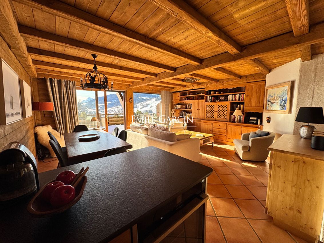 Situé à seulement quelques minutes du centre du village de Megève avec arrêt ski bus à proximité, joli appartement 3 pièces au 1er étage d'une jolie copropriété d'une surface 60 m². Vue dégagée et panoramique sur le village et le val d'Arly. Entrée, séjour avec terrasse de 20 m² exposée sud-ouest, cuisine équipée ouverte, 2 chambres dont une avec douche et lavabo, salle de bains, wc indépendant. Cave, placard à ski, 2 places de parking couvertes.