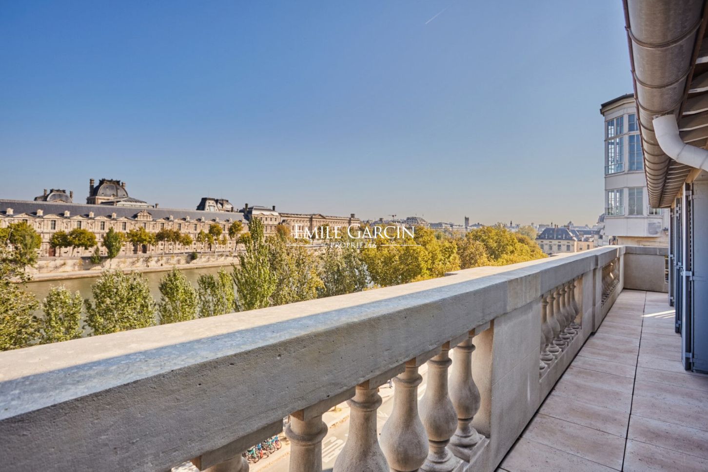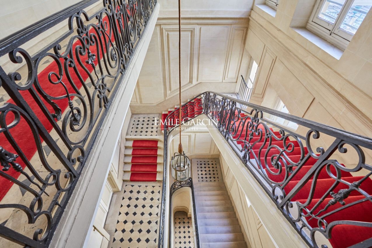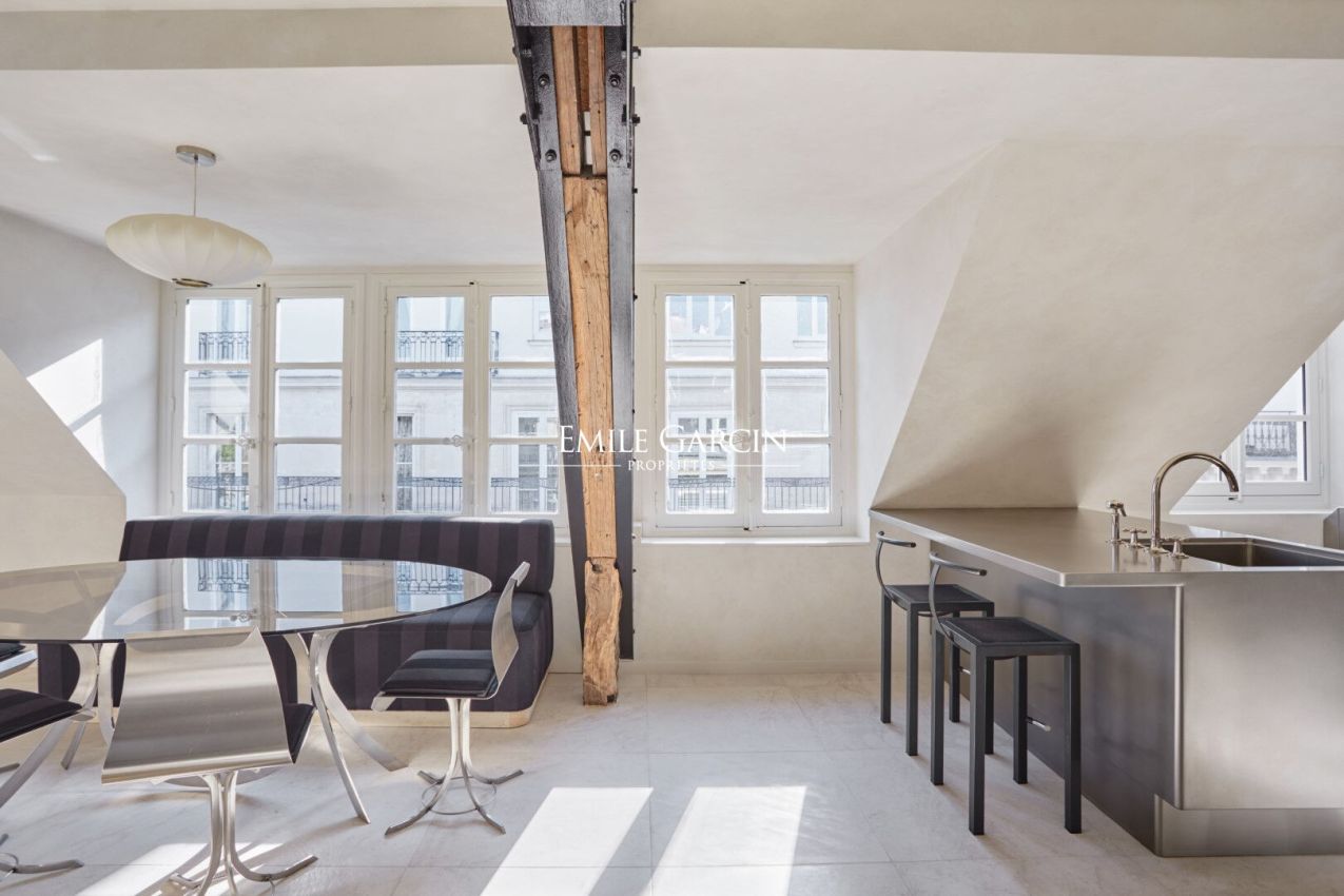 Quai Voltaire - Dans un magnifique immeuble sur les quais de la Seine, en face du mussée du Louvre, duplex en parfait état de 164.07 loi Carrez m² aux 4e et 5e étages par ascenseur. Cet appartement d'exception se compose au premier niveau d'une entrée, un vestiaire invité, un salon-salle à manger avec balcon de 19.01 m², une cuisine ouverte entièrement équipée et aménagée et des toilettes d'invités. Au deuxième niveau, deux suites avec des terrasses d'une surface de 7.58 m² et 7.55 m² avec vues sur les toits de Paris. Une place de parking complète ce bel ensemble. Gardien à demeure. (4.17 % honoraires TTC à la charge de l'acquéreur.) Copropriété de 29 lots - dont 14 lots habitation.(Pas de procédure en cours).
