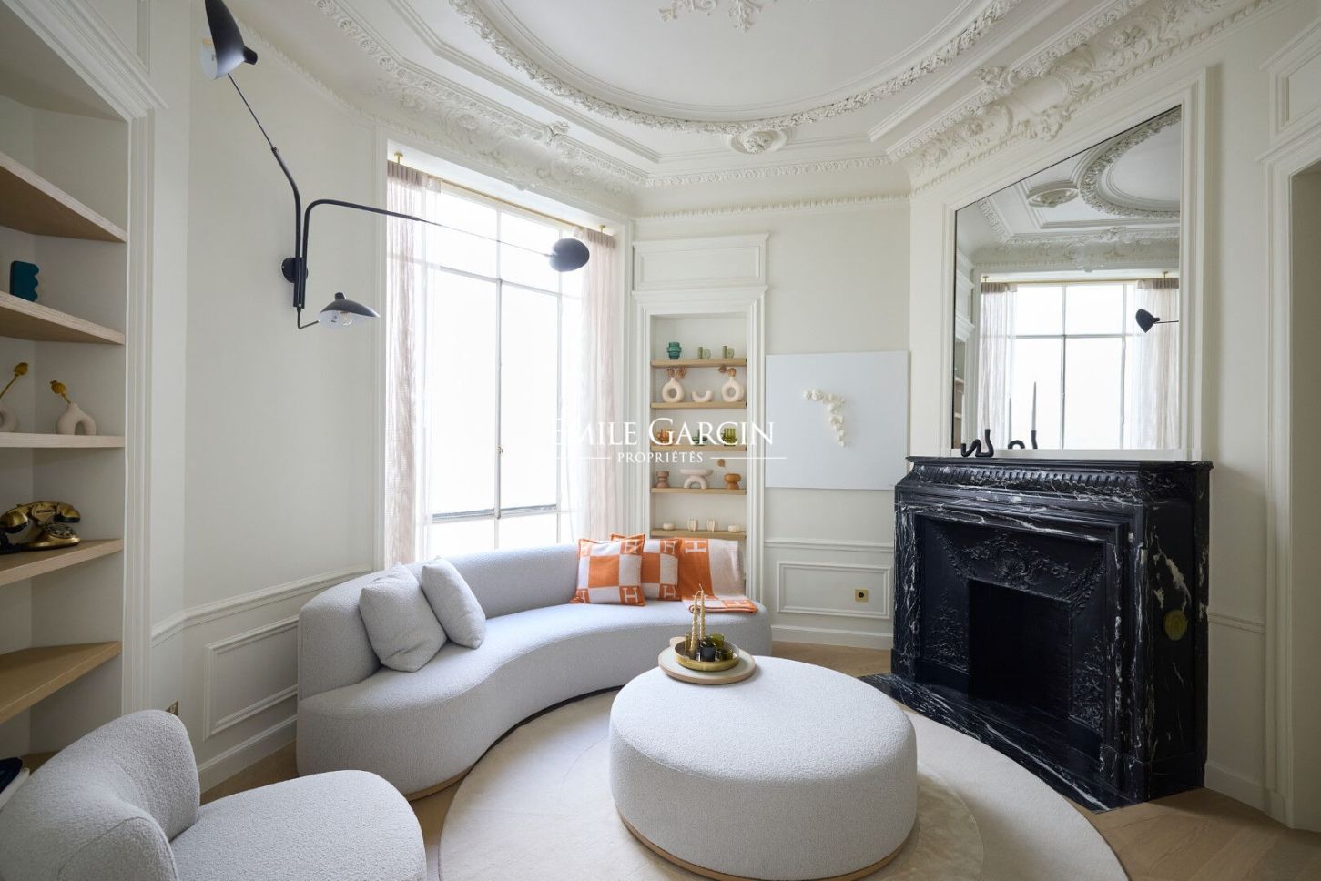 Paris VIIIe -Triangle d'Or - Situé dans un bel immeuble haussmannien en pierre de taille, au troisième étage par ascenseur, ce superbe appartement d'environ 160m² a été entièrement refait par un architecte, rénové avec des matériaux nobles. Offrant une belle luminosité avec son exposition sud et bénéficiant d'une belle hauteur sous plafond de plus de 3,30 mètres, il se compose d'une entrée, d'un grand séjour, d'une cuisine américaine ainsi que d'une petite cuisine entièrement équipées, d'une salle à manger, d'une suite parentale avec sa salle de douche à l'italienne et deux chambres avec salle d'eau commune. Climatisé et domotisé. Une cave en annexe. Rare