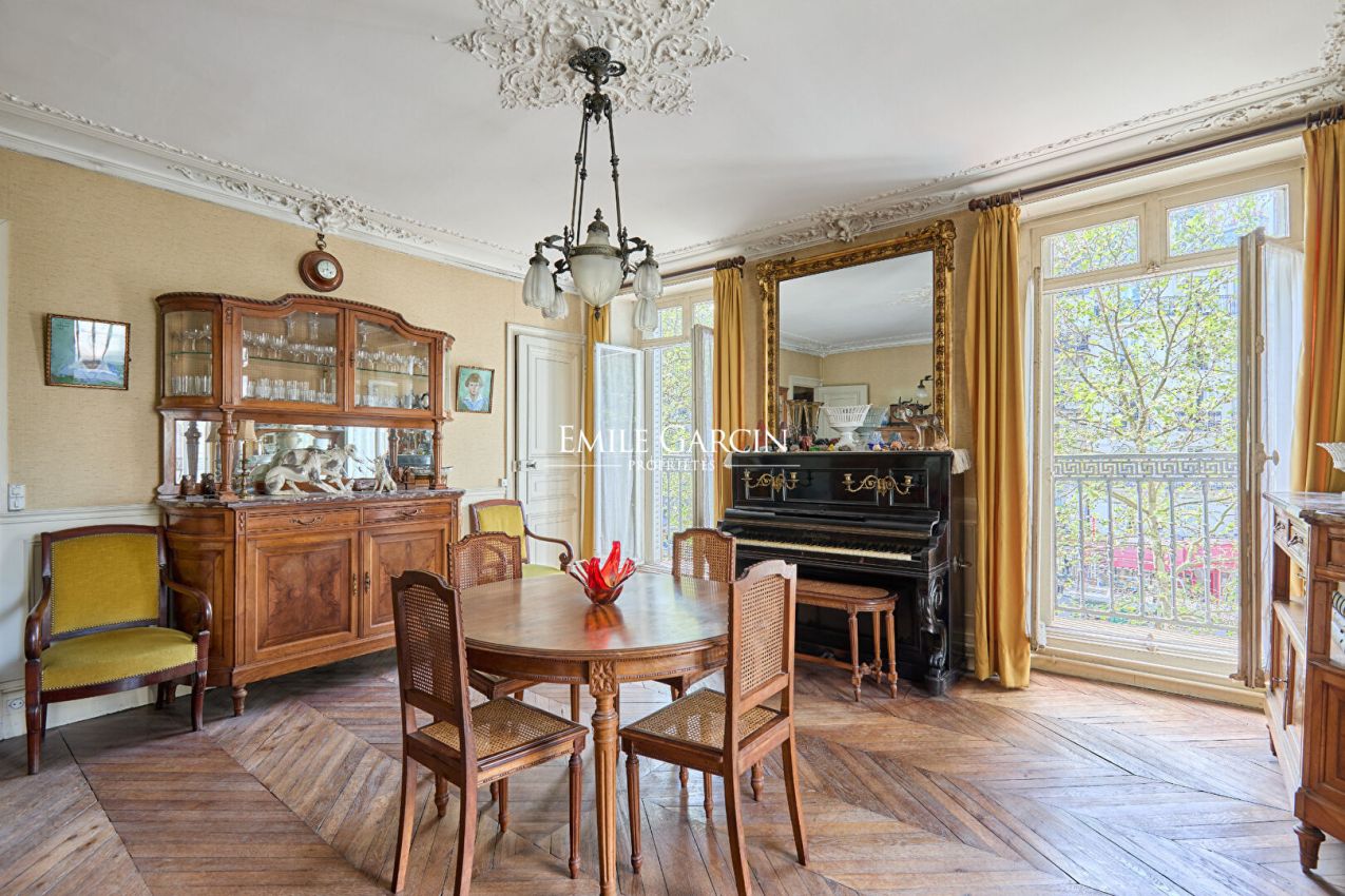 A deux pas de la mythique Place des Vosges, dans un immeuble année 1900, cet appartement avec des vues dégagées, plein de charmes de l'ancien (cheminées, moulures, parquet à l'anglaise), baigné de lumière de 107 m² Loi Carrez se situe au deuxième étage par ascenseur. Son plan classique en étoile, double exposition comprend une grande entrée, un salon, une salle à manger, trois chambres, une cuisine séparée, une salle de bains, une salle d'eau et toilettes. Travaux à prévoir. Copropriété bien entretenue. Emplacement prisé.