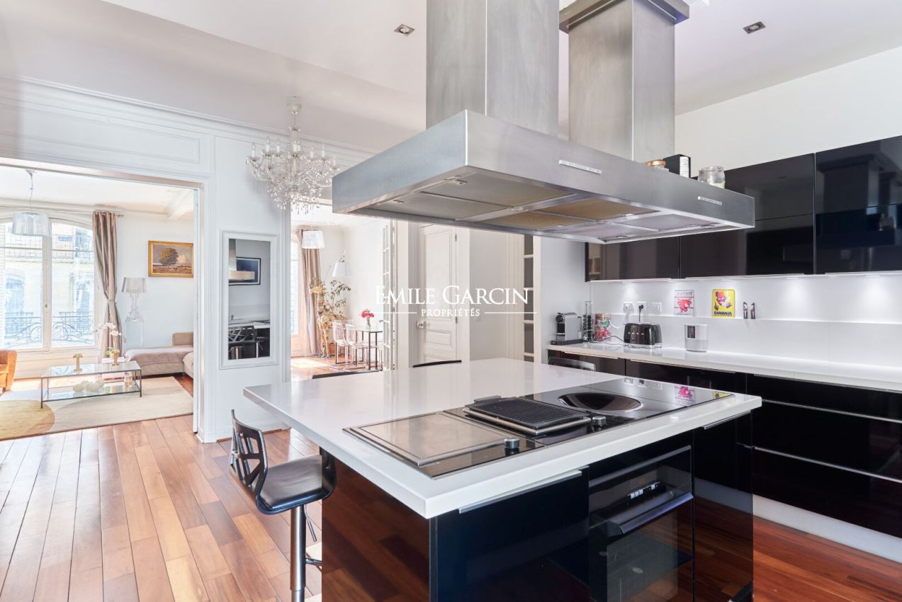 Dans un bel immeuble en pierre de taille, sécurisé et bien entretenu, appartement au 1er étage avec ascenseur de 135 m² , calme, situé dans une rue résidentielle. Il se compose d'une grande cuisine ouverte sur une double réception, d'une suite parentale avec salle de bains, douche et WC, de trois chambres supplémentaires, d'une salle de douche, de WC séparés et de nombreux rangements.