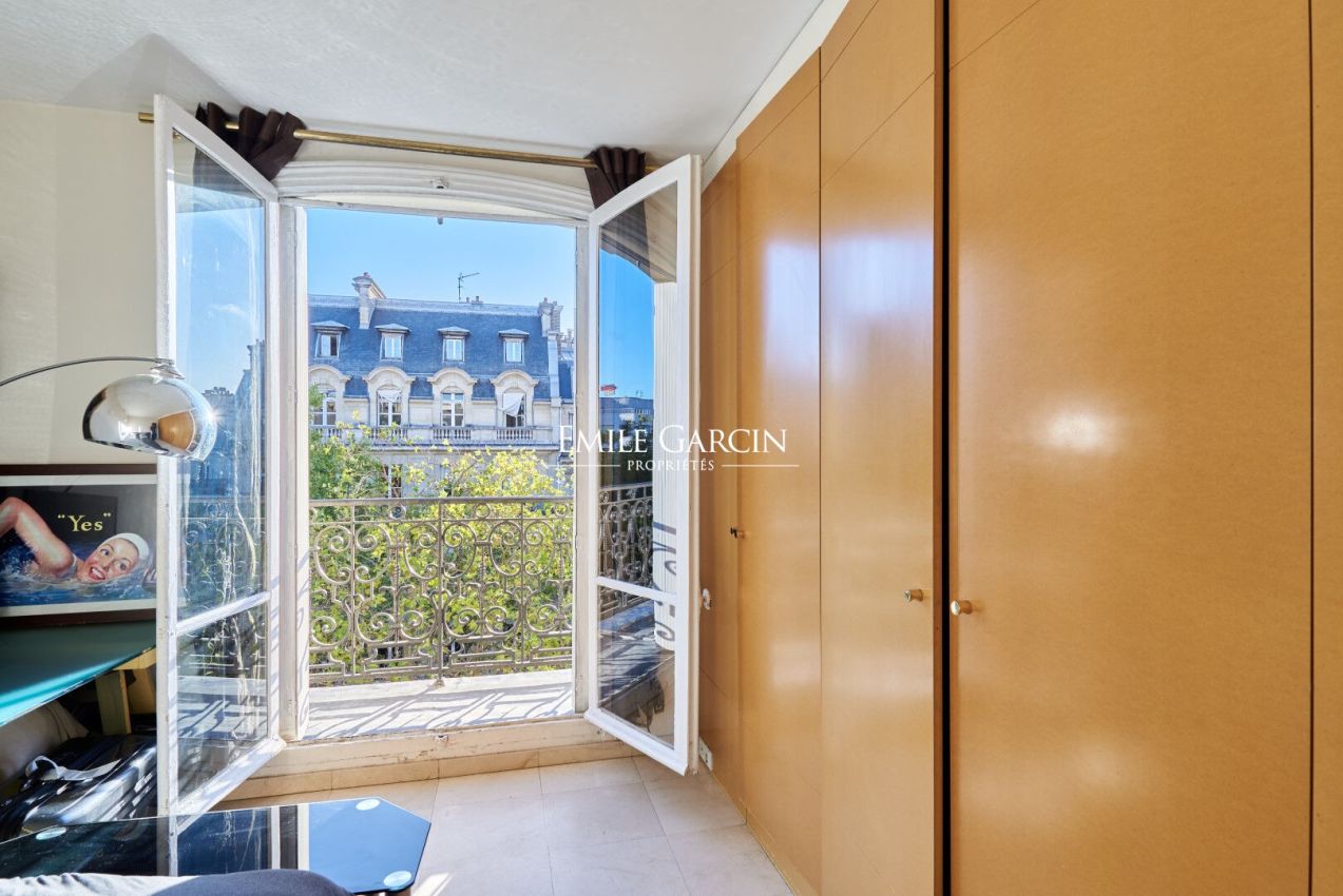 Rare - Place de l'étoile au 5 -ème étage dans un immeuble haussmannien avec ascenseur superbe appartement traversant de 50,87m² avec balcon de 4.25m². Il se compose : D'une entrée, d'un séjour avec cuisine ouverte, d'une chambre, d'une salle de bains et d'un toilette. Parties communes en parfait état.