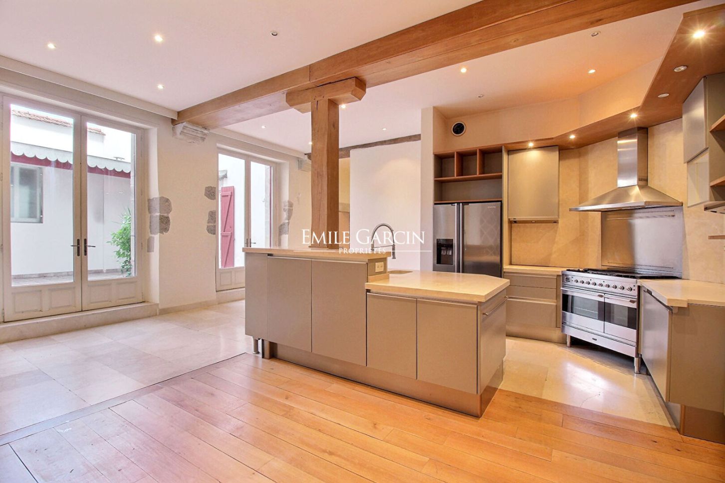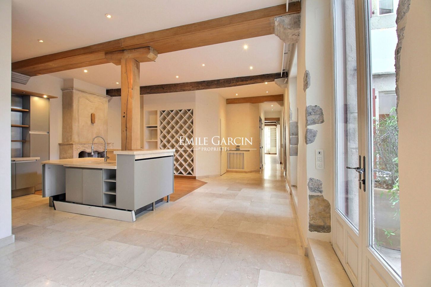 Situé au premier étage d'une bâtisse traditionnelle de caractère, ce grand appartement bourgeois développe environ 180 m² et s'organise autour d'un patio intérieur d'environ 30 m², véritable havre de calme et de clarté. La pièce de réception, aux volumes remarquables, dévoile une vue exceptionnelle et séduit par son atmosphère chaleureuse : poutres apparentes, pierres anciennes, cheminée en pierre et très belle hauteur sous plafond. L'espace nuit comprend deux chambres en suite, une chambre avec arrivée d'eau, ainsi qu'un bureau, un grand dressing, une buanderie et une grande cuisine dinatoire, pensée pour les moments de convivialité. Chaque détail reflète le charme de l'ancien, un rafraichissement sublimera ses prestations élégantes et intemporelles.
