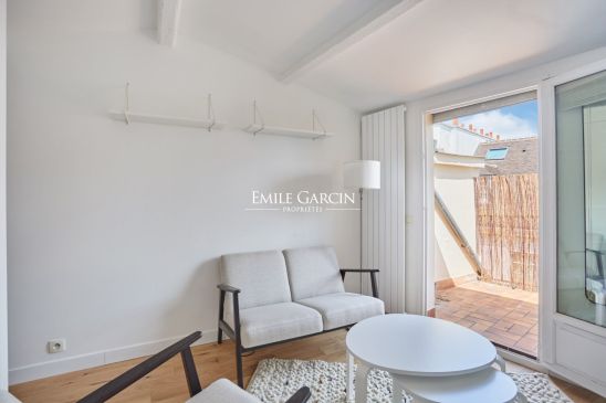 En exclusivité, à proximité de l'Hôtel de ville, dans un immeuble du XVII ème sans ascenseur, au 6ème et dernier étage, sur cour, plein ciel, un appartement studio lumineux de 24,03 m² loi Carrez, comprenant une entrée, une pièce de vie, avec cuisine ouverte et une salle de bains avec toilette. Plan compact, au calme absolu.