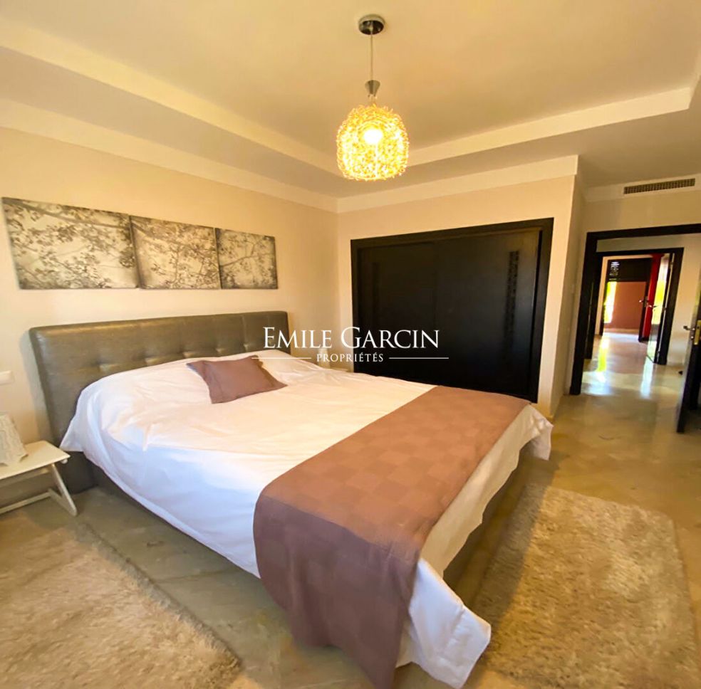 l'appartement se compose d'un salon et salle à manger avec accès sur la terrasse, cuisine entièrement équipée avec balcon, 2 chambres, salle de bain, grande piscine commune, poolhouse et salons extérieurs à disposition des résidents, joli parc arboré.