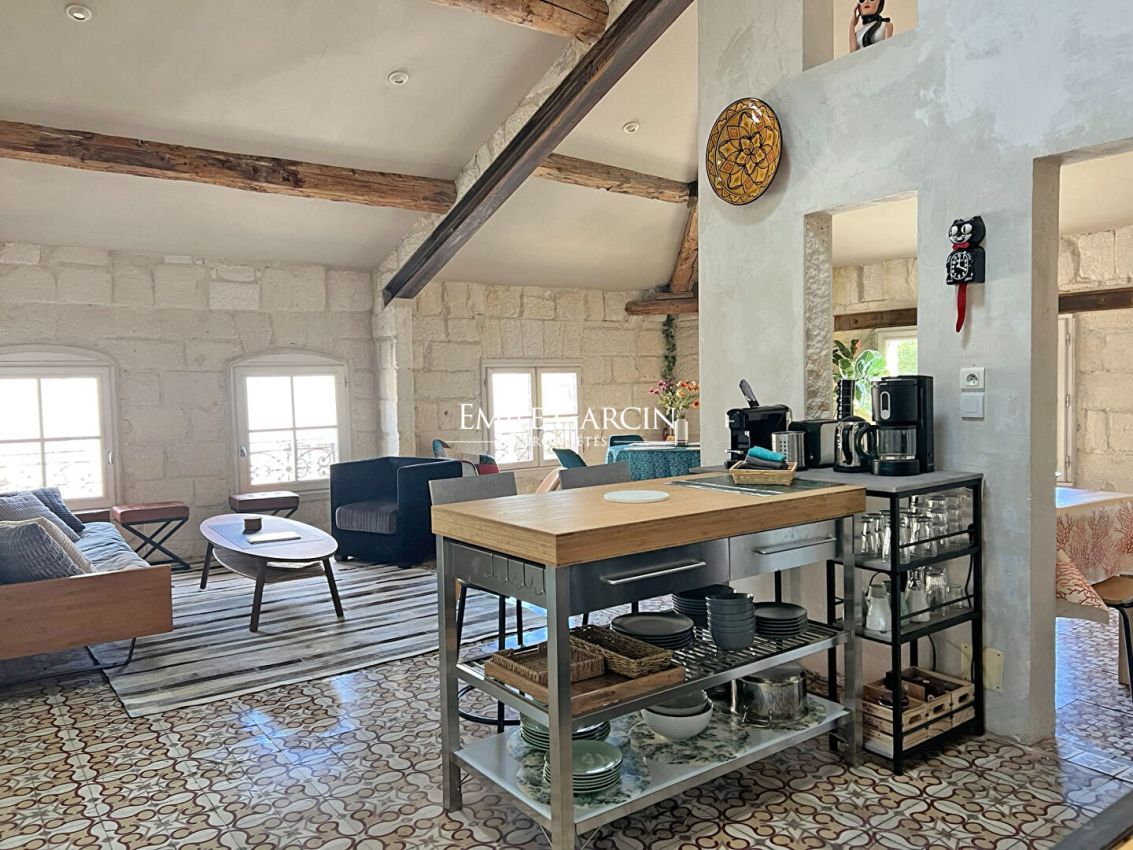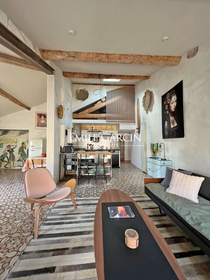 Dès l'entrée, vous serez séduit par un séjour baigné de lumière, avec belle hauteur sous plafond, poutres apparentes et volumes parfaitement optimisés. L'espace de vie s'ouvre harmonieusement sur une cuisine équipée, idéale pour recevoir.