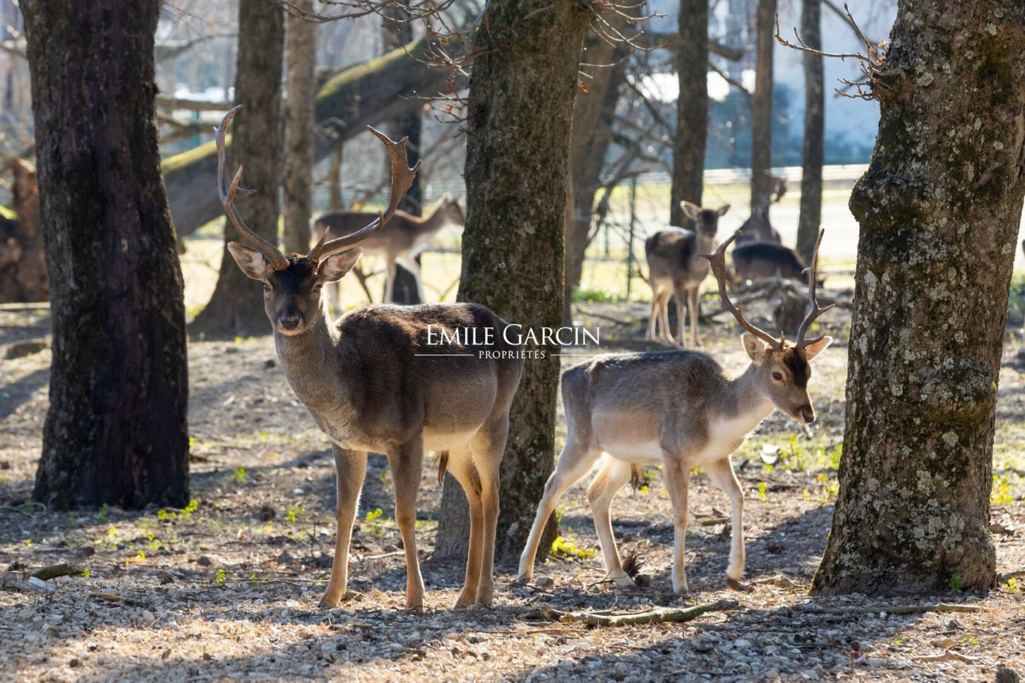 La féérie opère depuis le parc, de près de 10 hectares clos, où évoluent en liberté une vingtaine de biches et de cerfs, rendant ce lieu de villégiature unique et très privilégié.