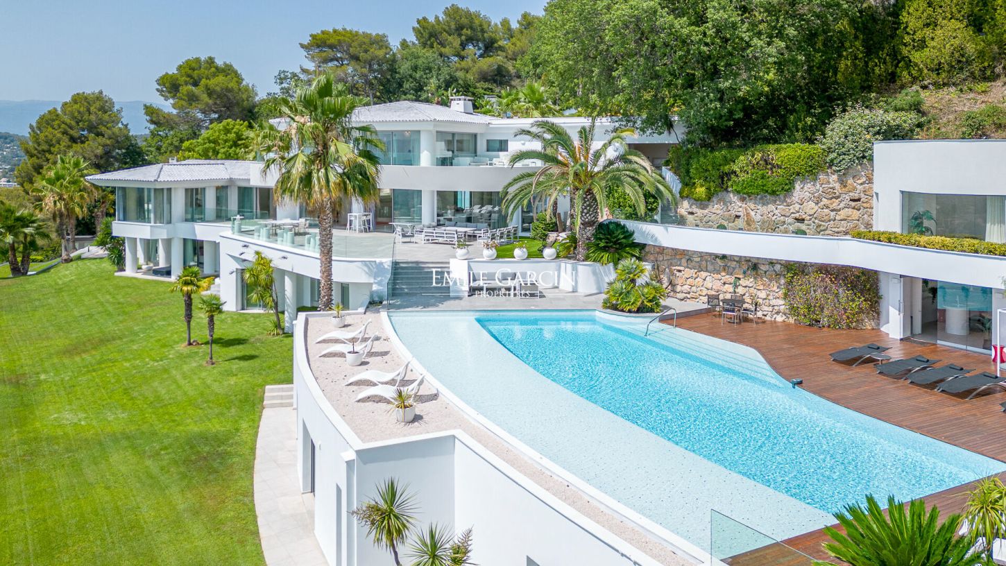 A vendre Côte d'Azur, Cannes, somptueuse demeure de prestige à la situation exceptionnelle et aux vues panoramiques sur la Méditerranée. Rare et au calme absolu, cette propriété unique de 2300 m2 luxueusement rénovée, desservie par un ascenseur, propose 18 belles suites au total, un court de tennis, une belle piscine avec pool house et de spacieuses terrasses surplombant le parc luxuriant de plus d'un hectare avec des vues mers imprenables.