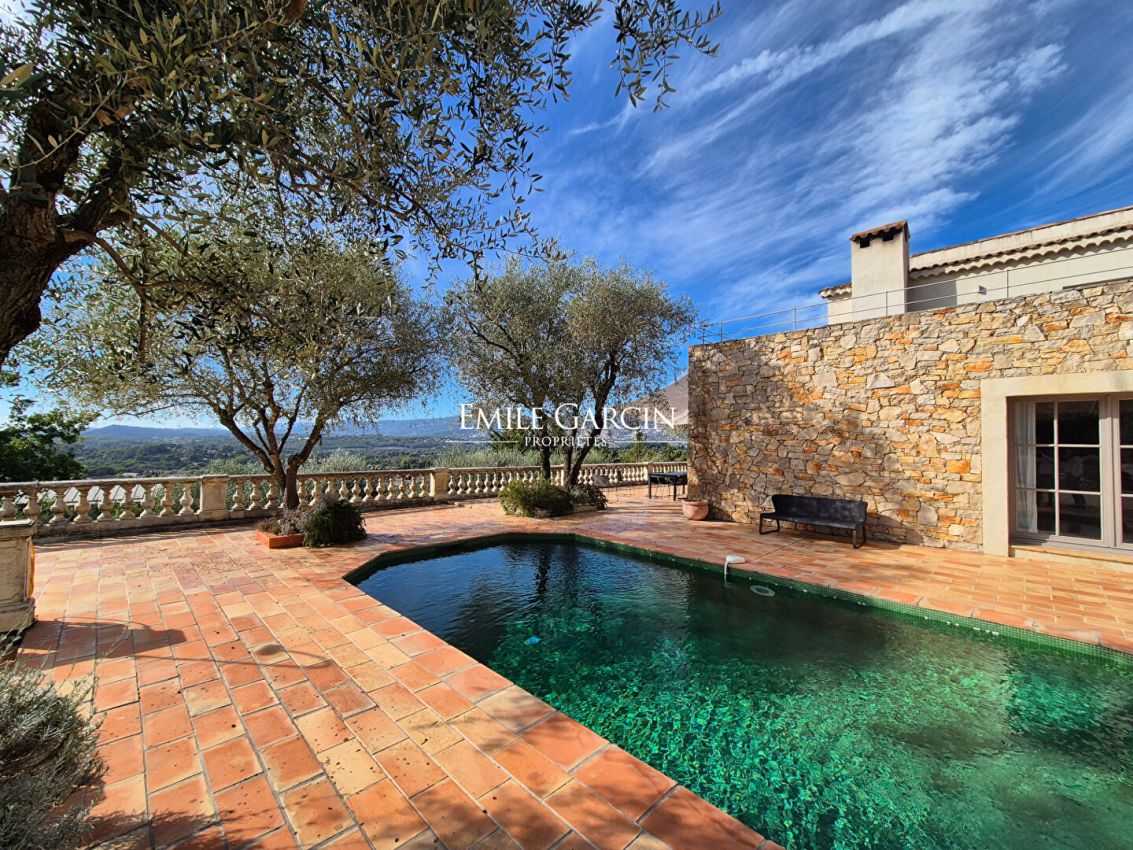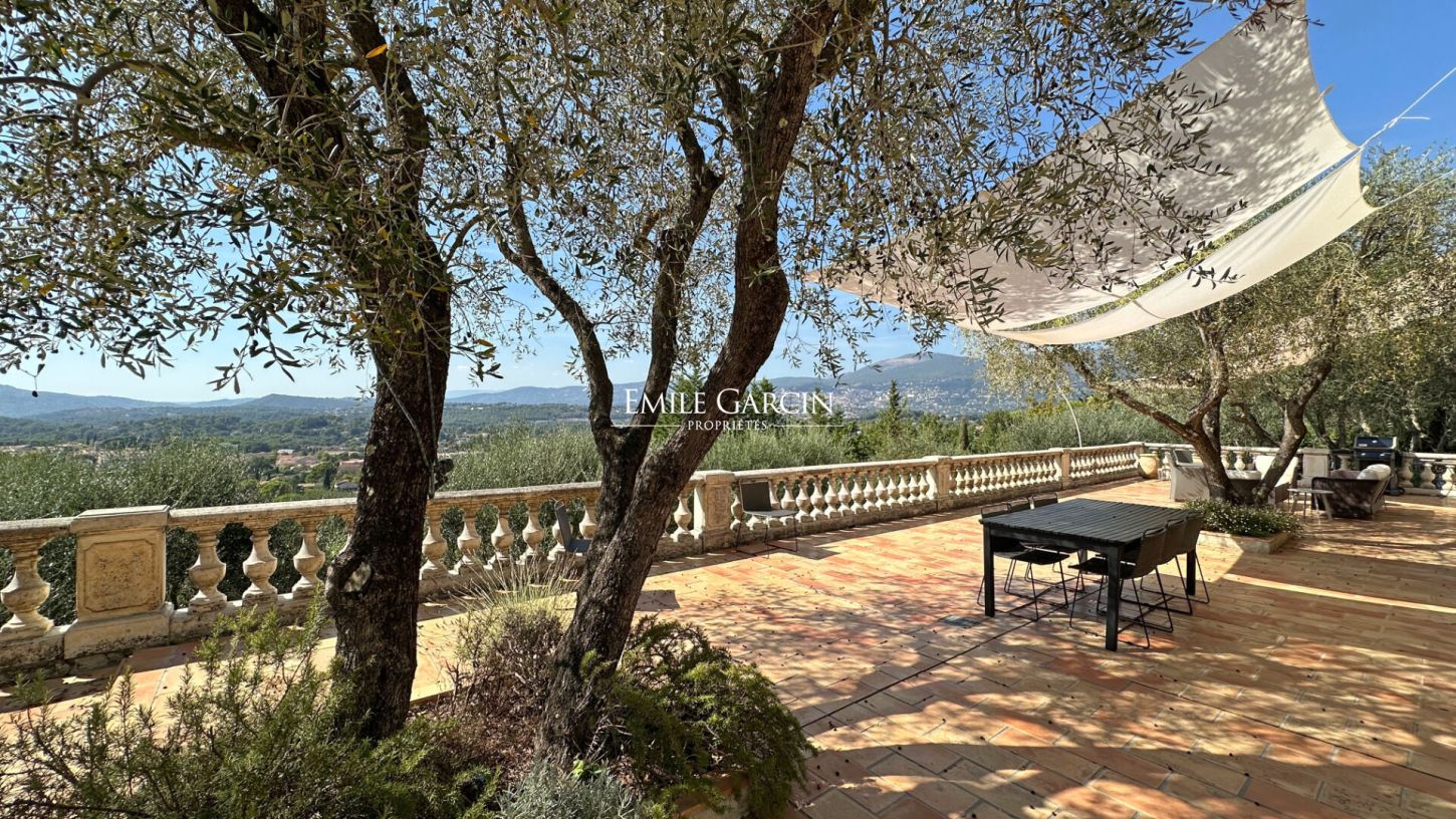 Édifiée sur un terrain paysager d'environ 2 400 m² agrémenté d'oliviers et d'essences méditerranéennes, cette villa développe des prestations haut de gamme et des volumes généreux baignés de lumière.