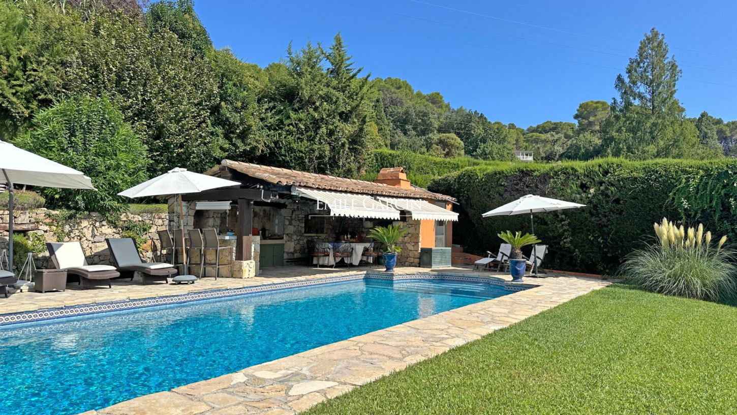 VILLA SPACIEUSE A VENDRE, MOUGINS, CÔTE D'AZUR, PISCINE, JARDIN AVEC VUES DÉGAGÉES.
