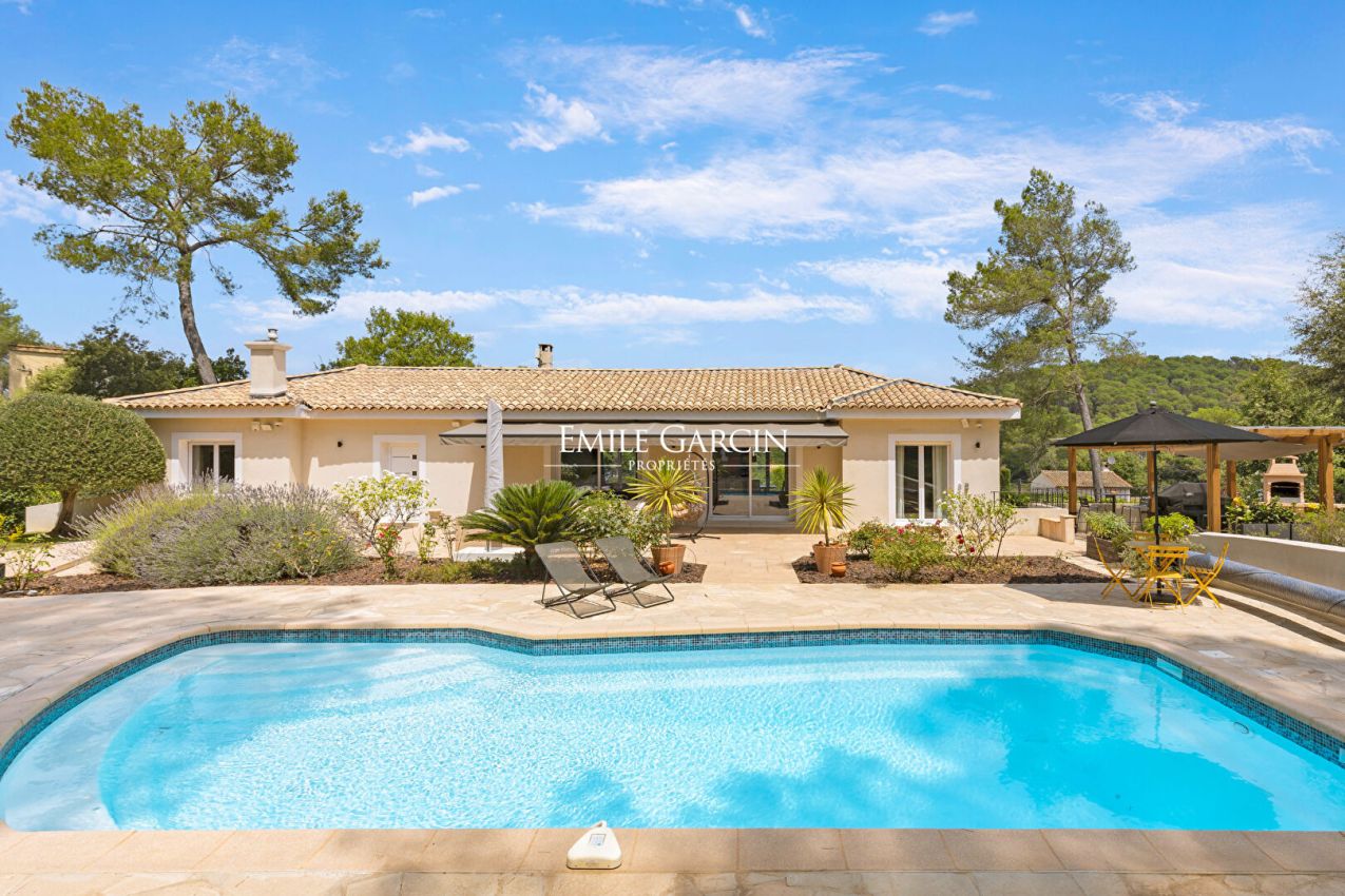 Dans un environnement privilégié au coeur de Mougins, dans le secteur prisé de Fontmerle, à proximité des écoles, de l'Etang de Fontmerle et du Golf, au sein d'un domaine sécurisé recherché, Émile Garcin vous propose cette élégante propriété d'environ 240 m², en parfait état, bénéficiant d'un calme absolu et d'une superbe vue sur le golf.